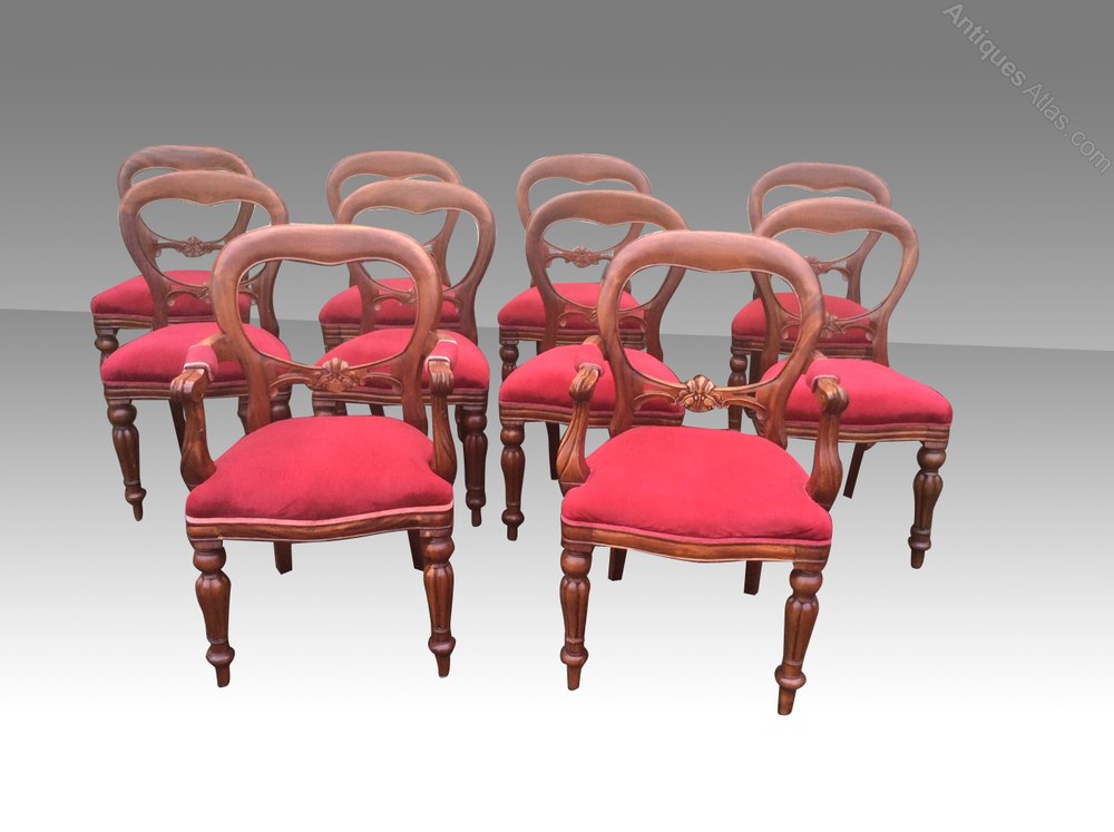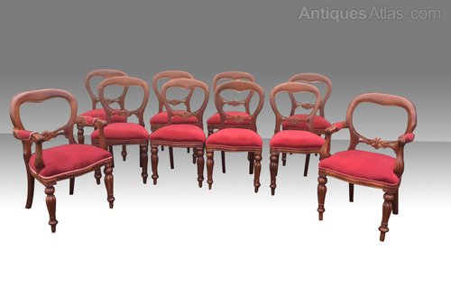 Ten vintage mahogany balloon back Dining Chairs