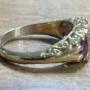 The ring is very versatile and could be worn as an engagement ring or as a dress ring. The 18ct gold gives the ring a warm lustre setting the rubies and diamonds off beautifully and the filigree work which the head of the ring is set in, adds to its antique heritage.