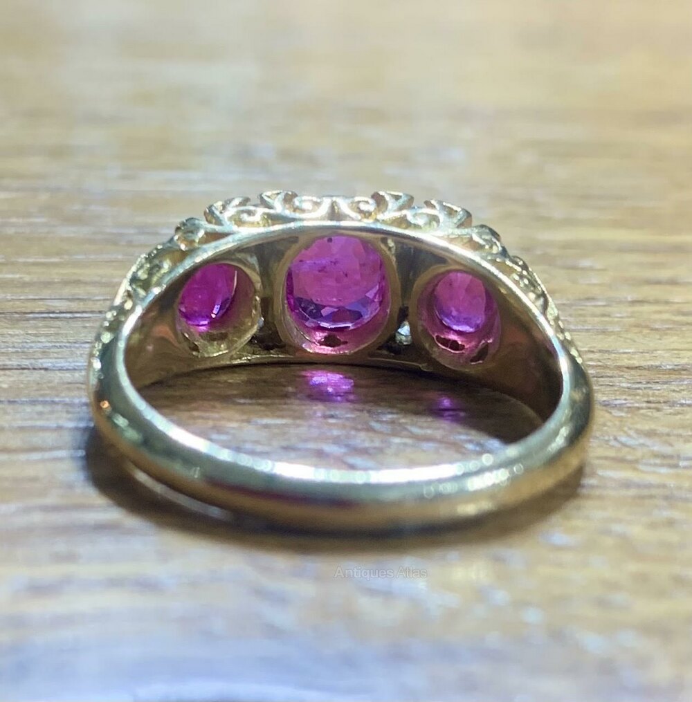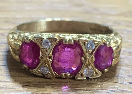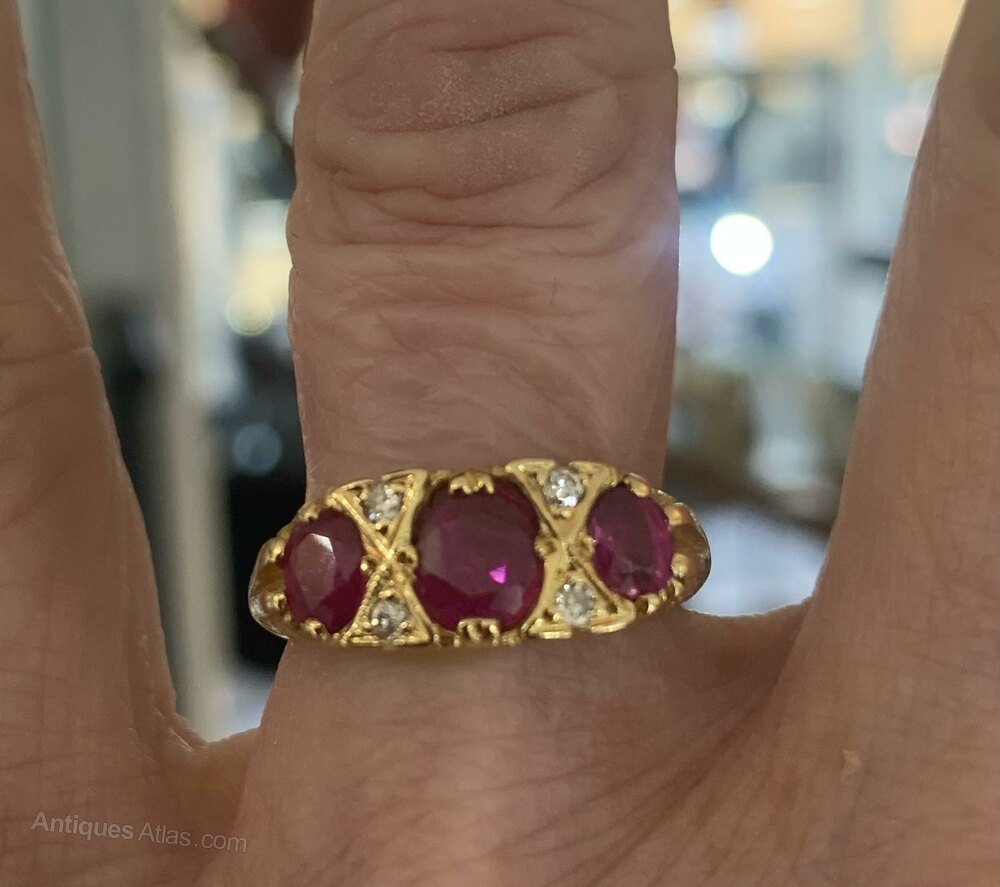 Antique Ruby & Diamond 18ct Gold Trilogy Ring - N