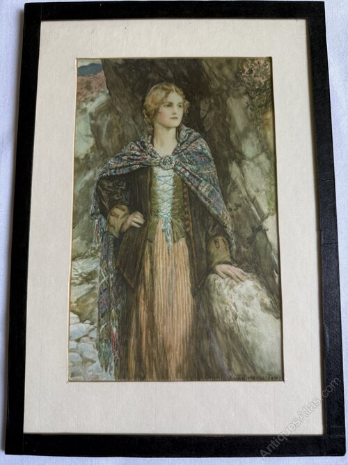 Celtic Lady Signed Print on Silk W Margetson 1931