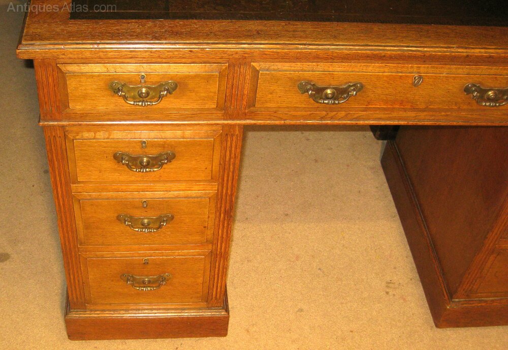 Victorian Solid Oak Pedestal Desk.