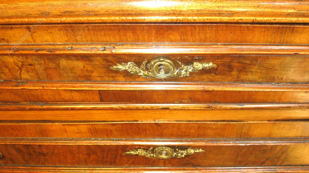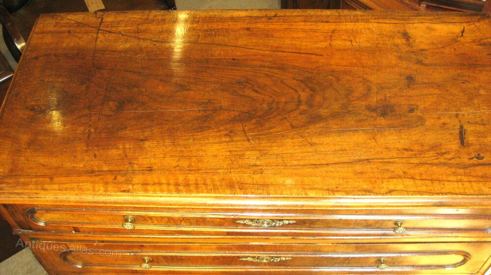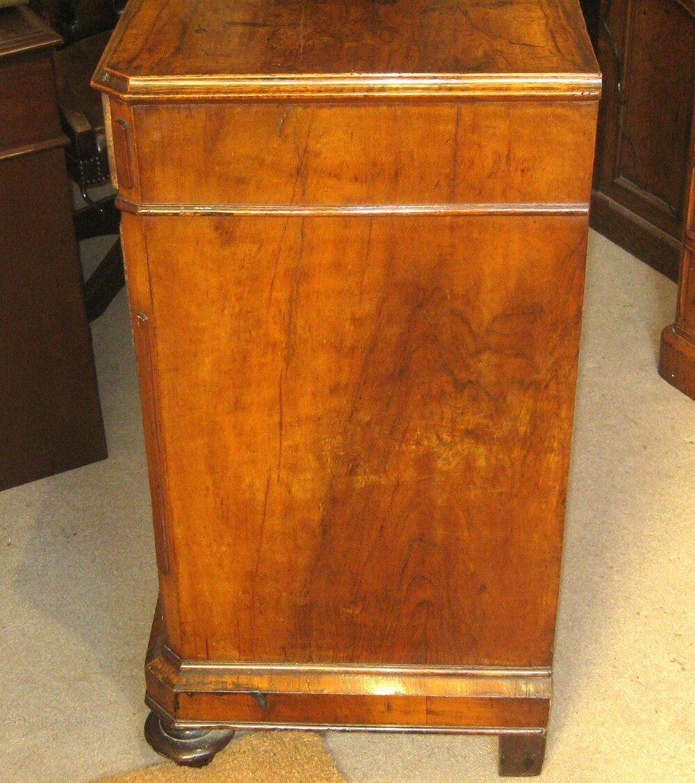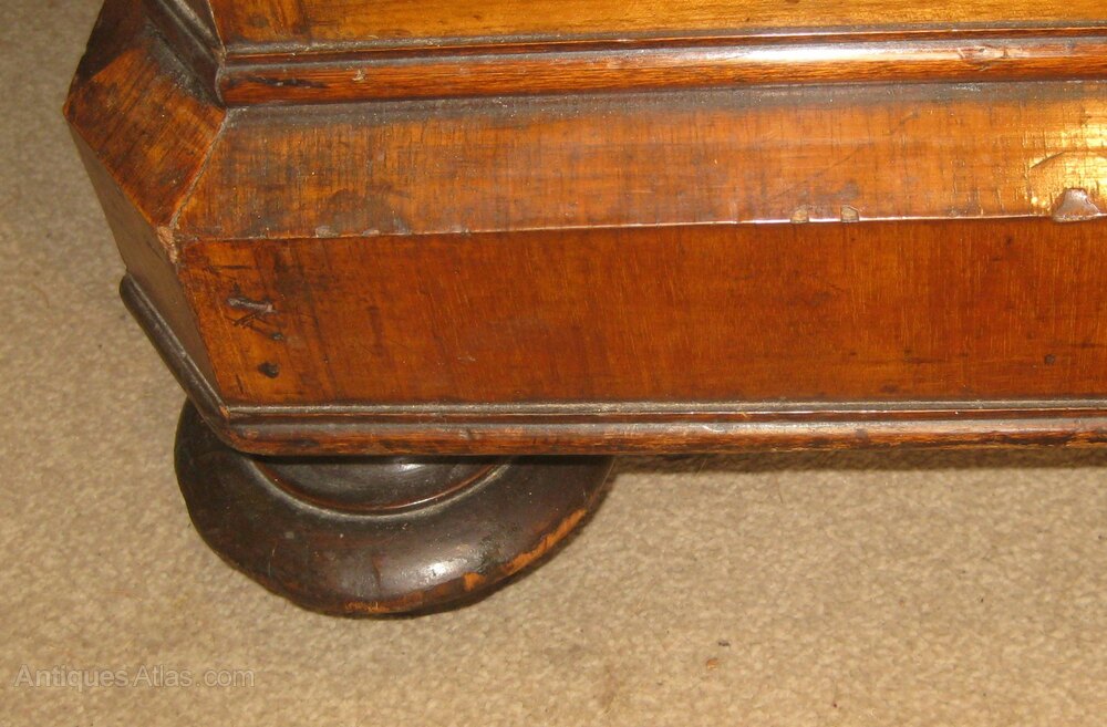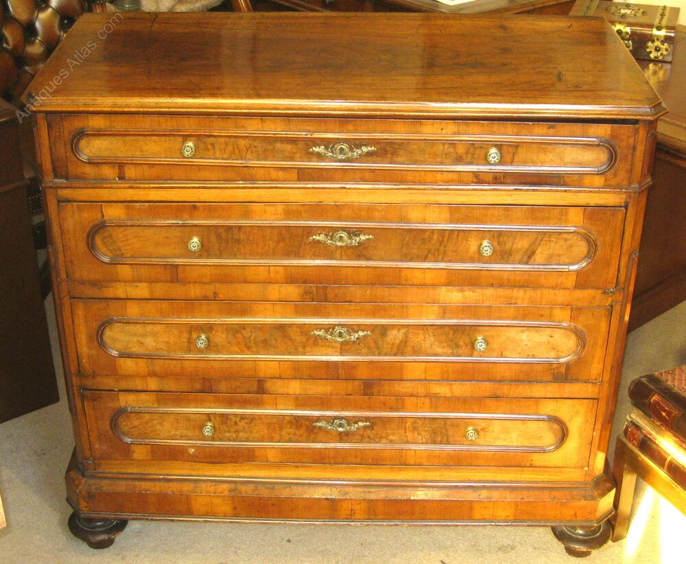 Victorian walnut chest of drawers. The 4 large drawers of a good, hand-cut, dovetailed construction with brass knobs and pretty brass escutcheons. Standing on turned bun feet. With original Italian owners label to the back.Size 43 x 20 x 39 inches tall (108 x 51 x 98 cm tall)