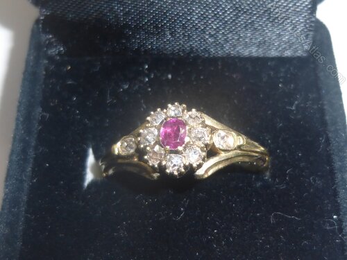 A Victorian 15ct gold,diamond and ruby cluster ring(not marked,but tested by us as 15ct)In very good condition,showing virtually no signs of wear,all stones being original.UK ring size "L".origin UK.c.1880s.Supplied in a modern presentation box.Please press the Buy Now button to pay by debit or credit card,or by Paypal account.We also accept payment by bank transfer