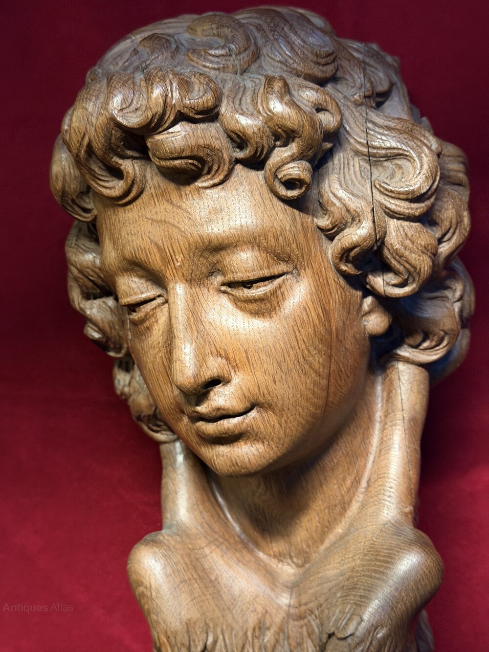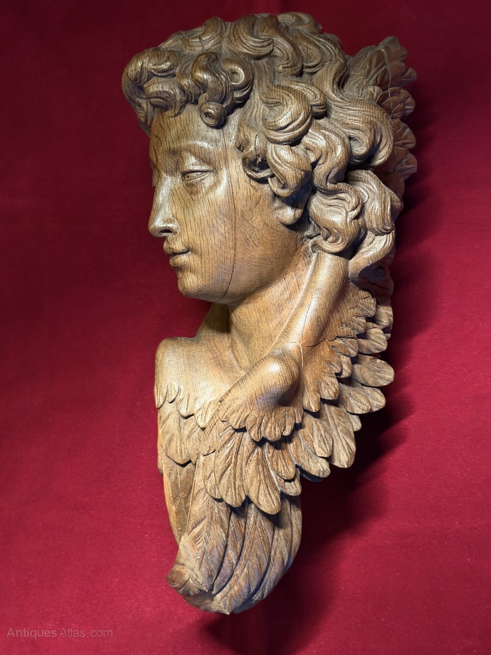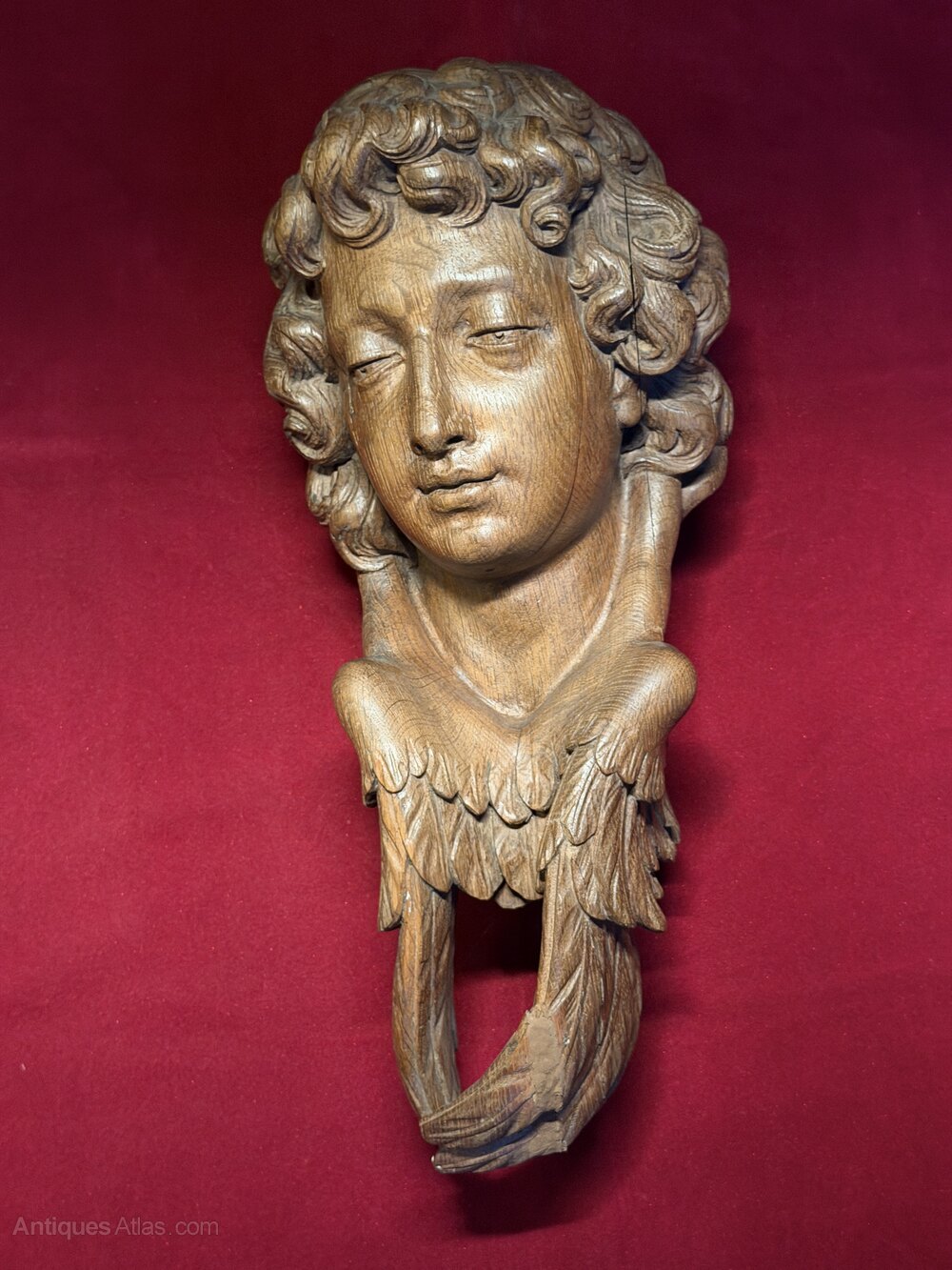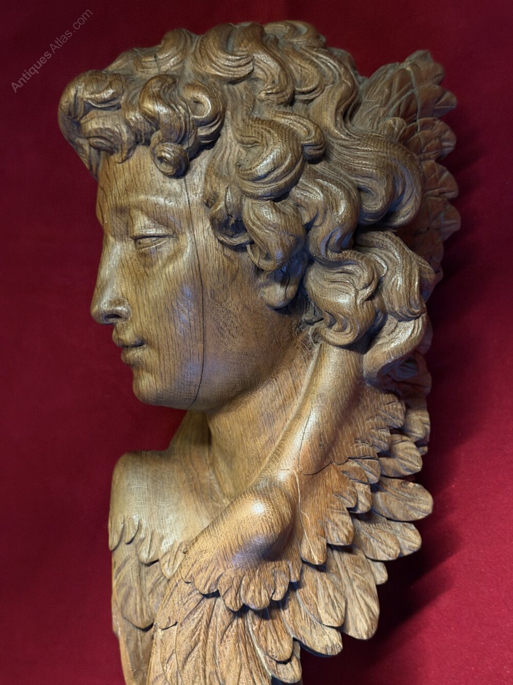 19th Century life size carved oak religious sculpture of an Angel Head with decorative wings.Beautifully carved with great detail and character, and a highly decorative display piece.