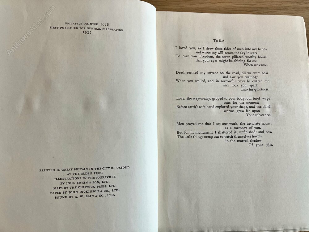 1935 Seven Pillars of Wisdom by TE Lawrence 1st Ed