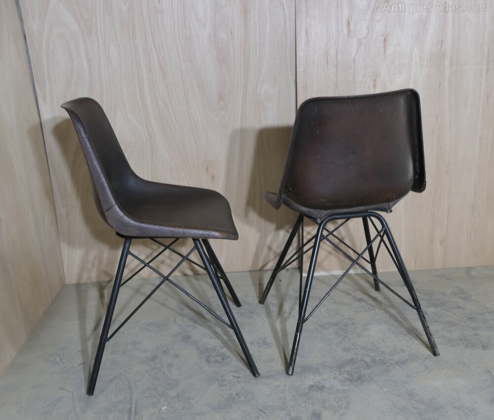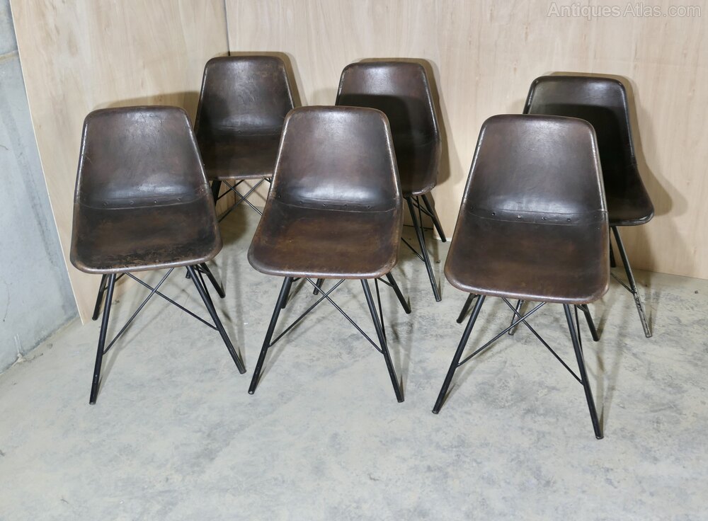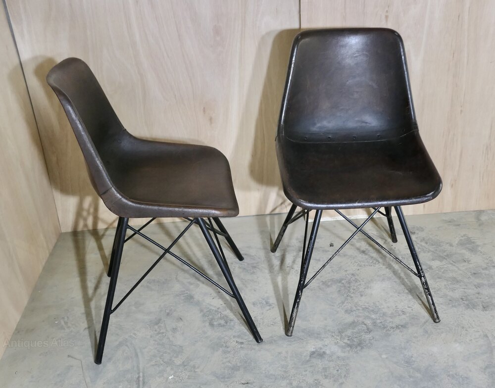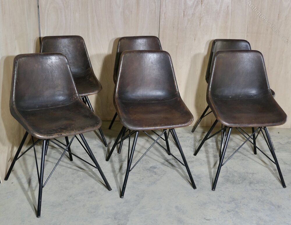 French Industrial Dining Chairs, 6 Dark Leather ChairsA very practical and recognisable style from the 1960s, the chairs re covered in Dark Brown Leather, they are in good useable condition