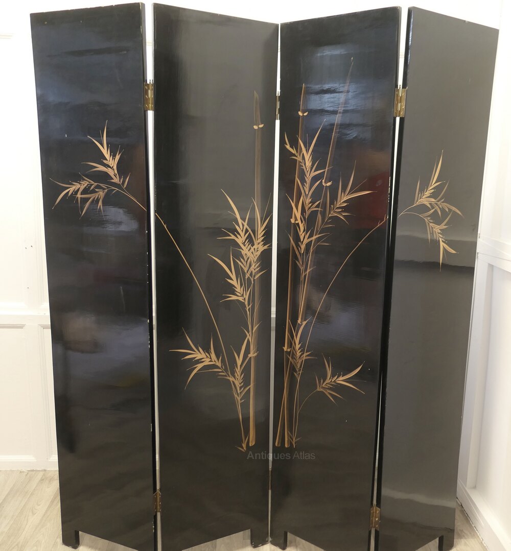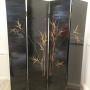 On one side the screen is of a Japanese Garden with Geisha, brightly coloured flowers and birds and on the reverse a beautiful minimalistic bamboo design