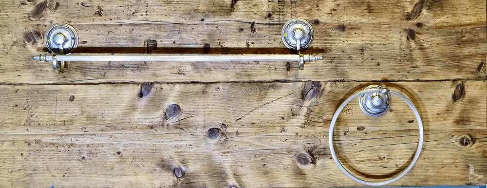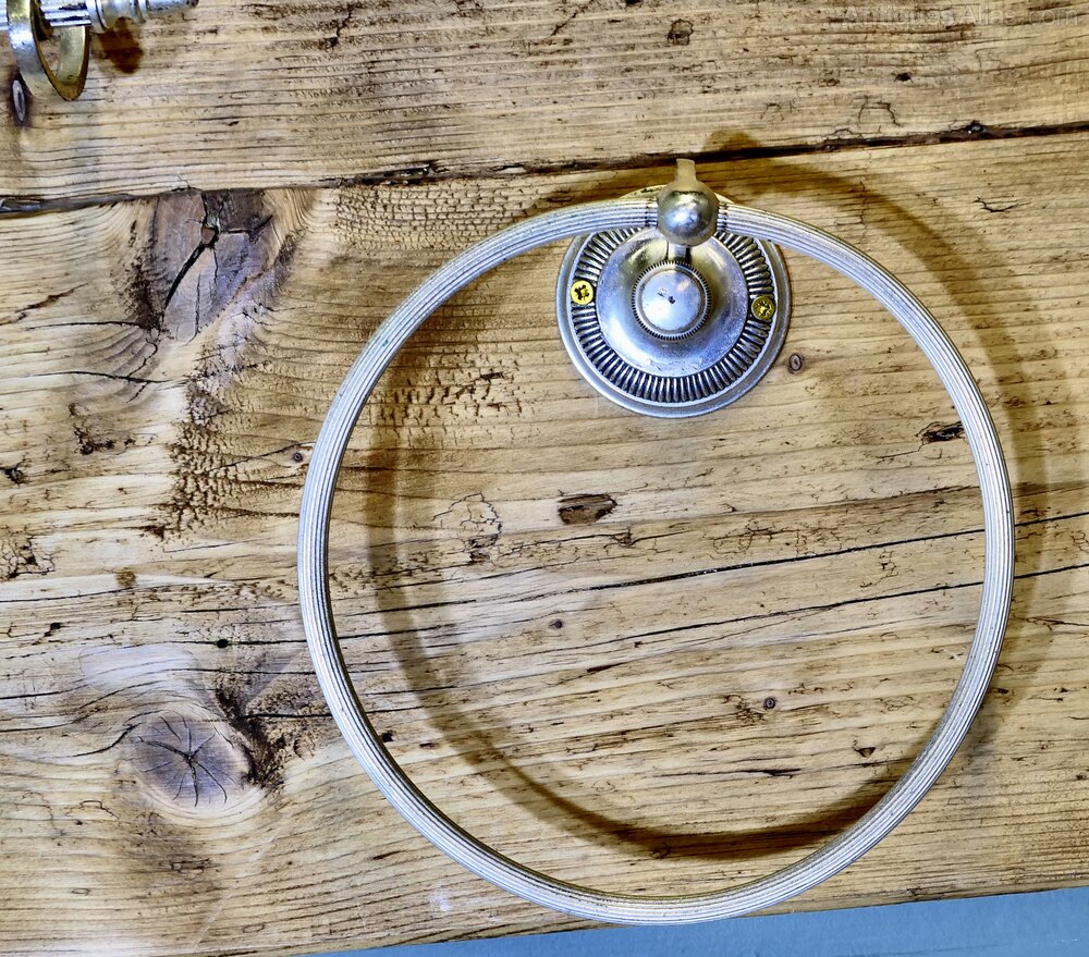 Silver Plated Towel Rail and Towel RingAn unusual set being silver ideal fro drying towels in a small cloak room, the rail is 22” long, the ring is 7” in diameter