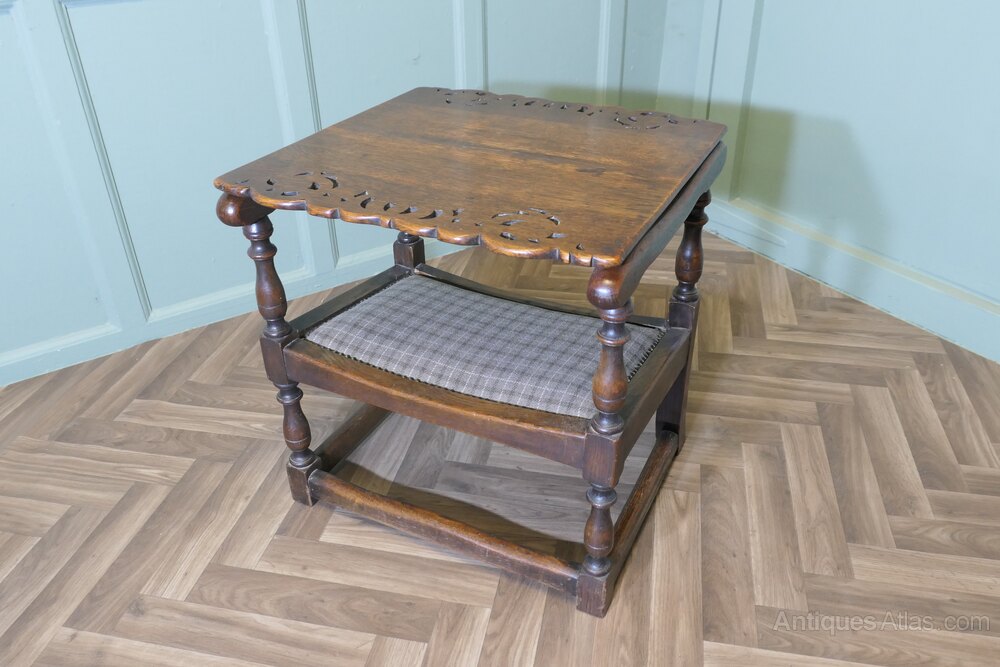 A great idea and very useful, especially where space is limited and both a seat and a table may be needed. The seat is newly upholstered with Irish tweed