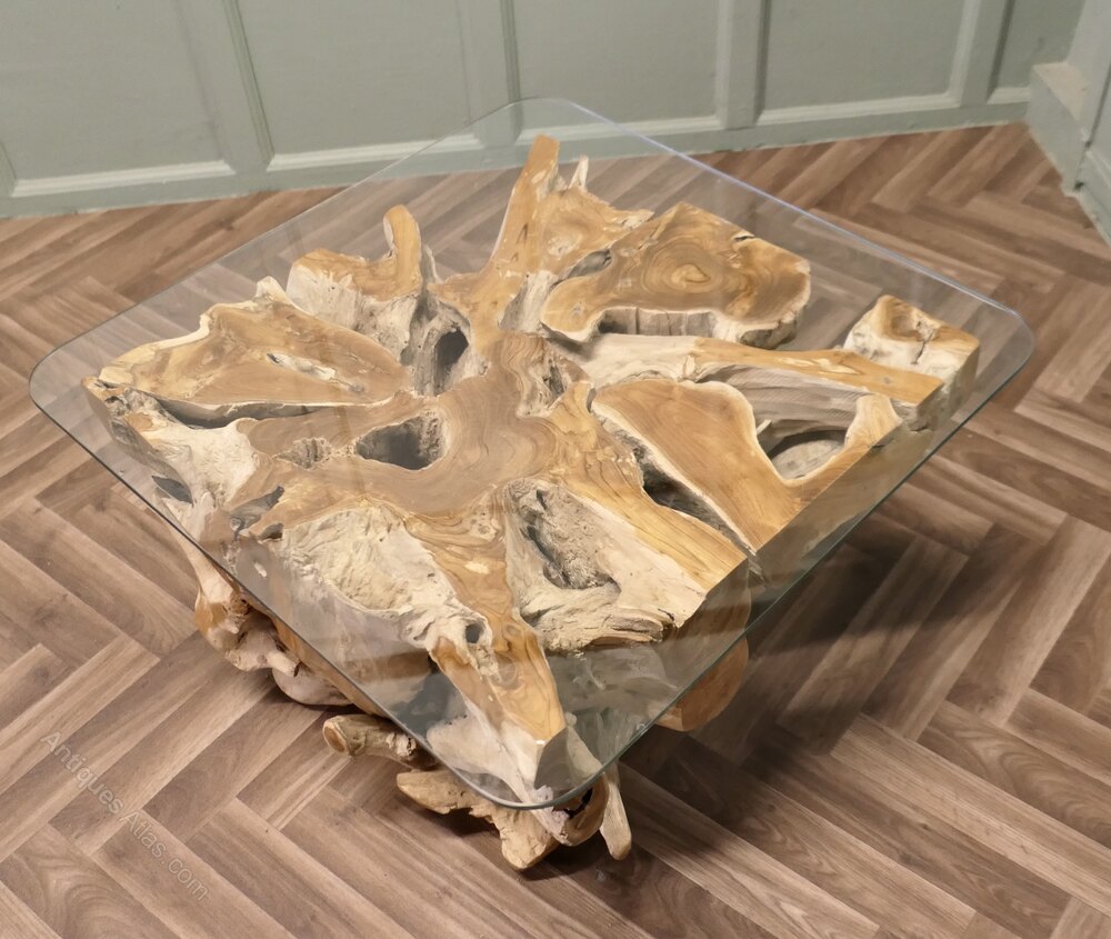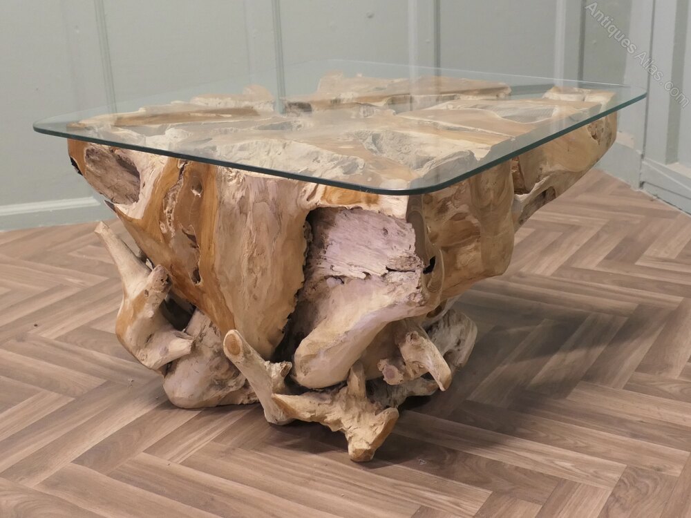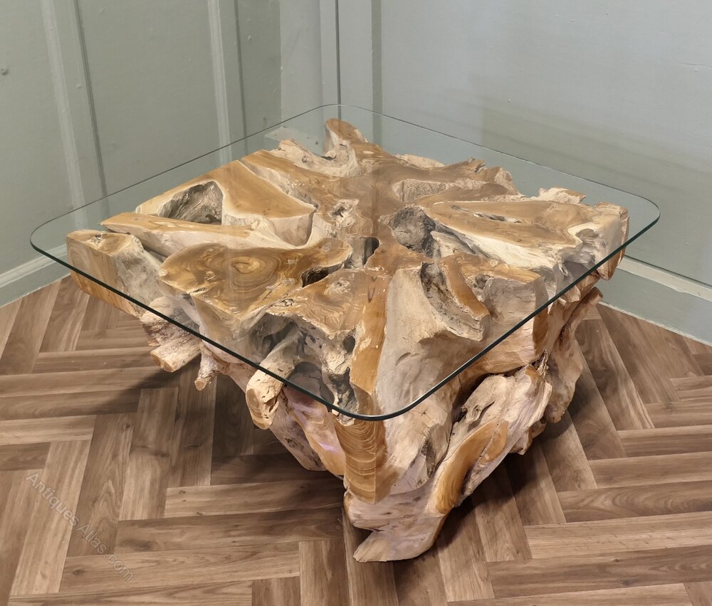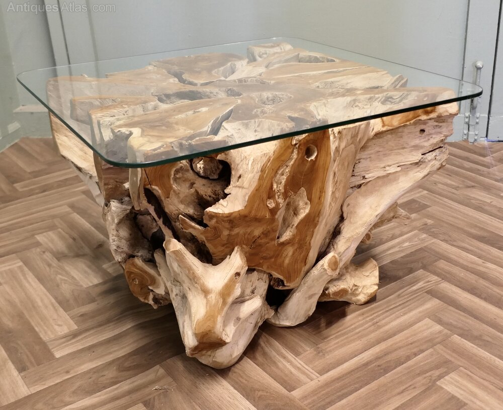 Live Edge Yewwood Root Tree Coffee Table With Glas