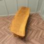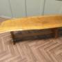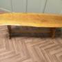 Vintage Hand Carved Live Edge Solid Plank Elm Coffee TableThis is a good sturdy country made table, it has an irregular shaped elm top which has very attractive figuring, a large slice of elm as it was cut from the tree. The sturdy refectory style legs have a full length stretcher