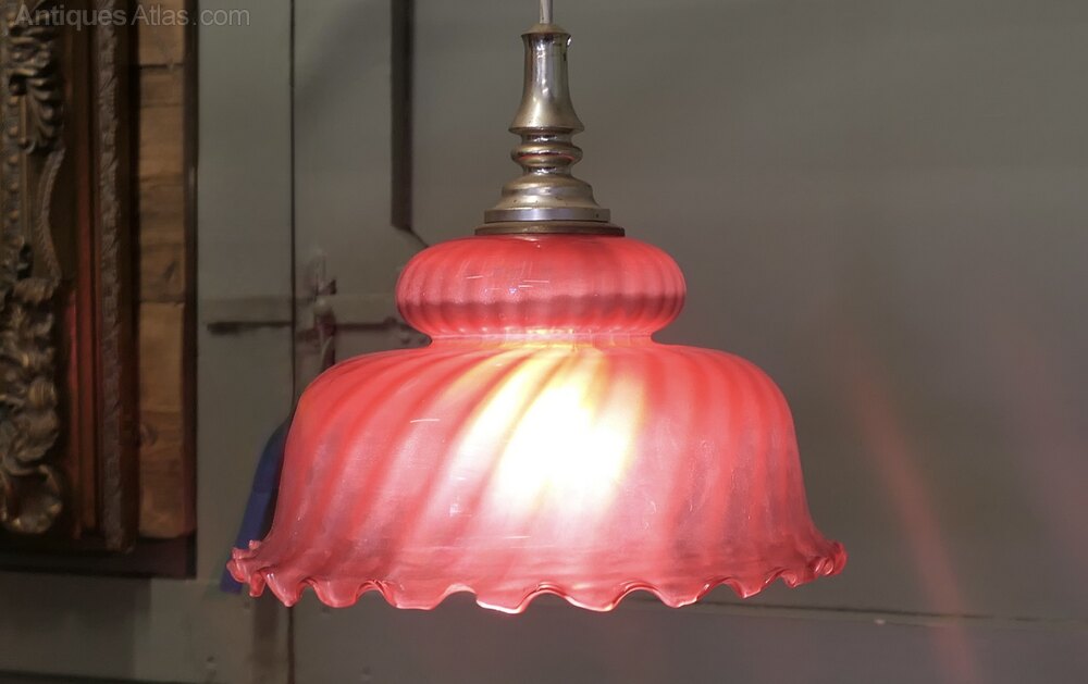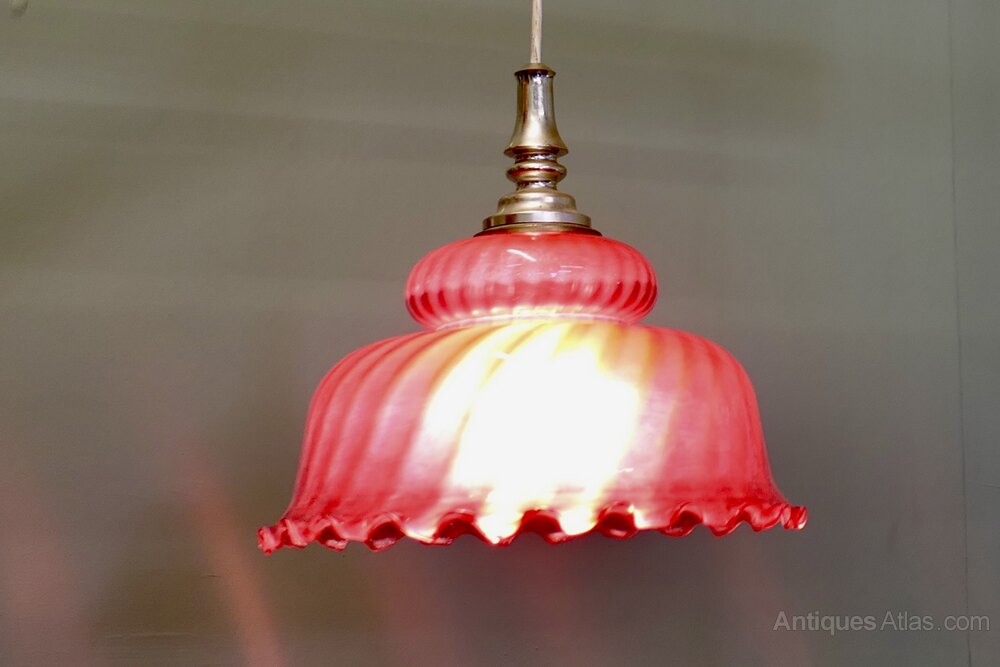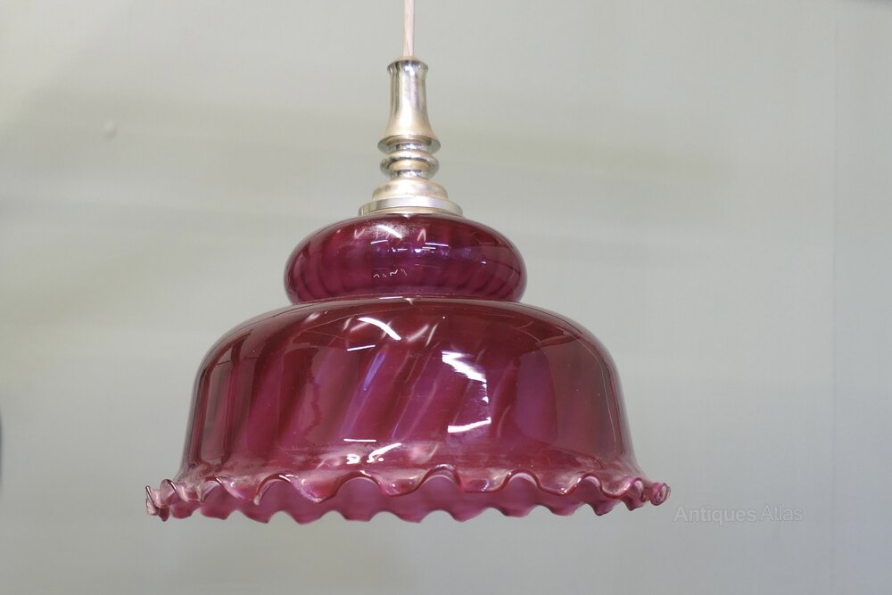 Large Victorian Ruby Glass Ceiling Pendant LampshadeThis very attractive Victorian lampshade can be fitted on to your existing ceiling pendant, it is in good vintage condition and comes with all the necessary modern fittings