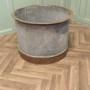 Large Galvanised Steel and Iron Cauldron Log BinThis is a large galvanised pot it has a brutalist look with a rust covered base, this is a strong piece and it would make a great log carrier