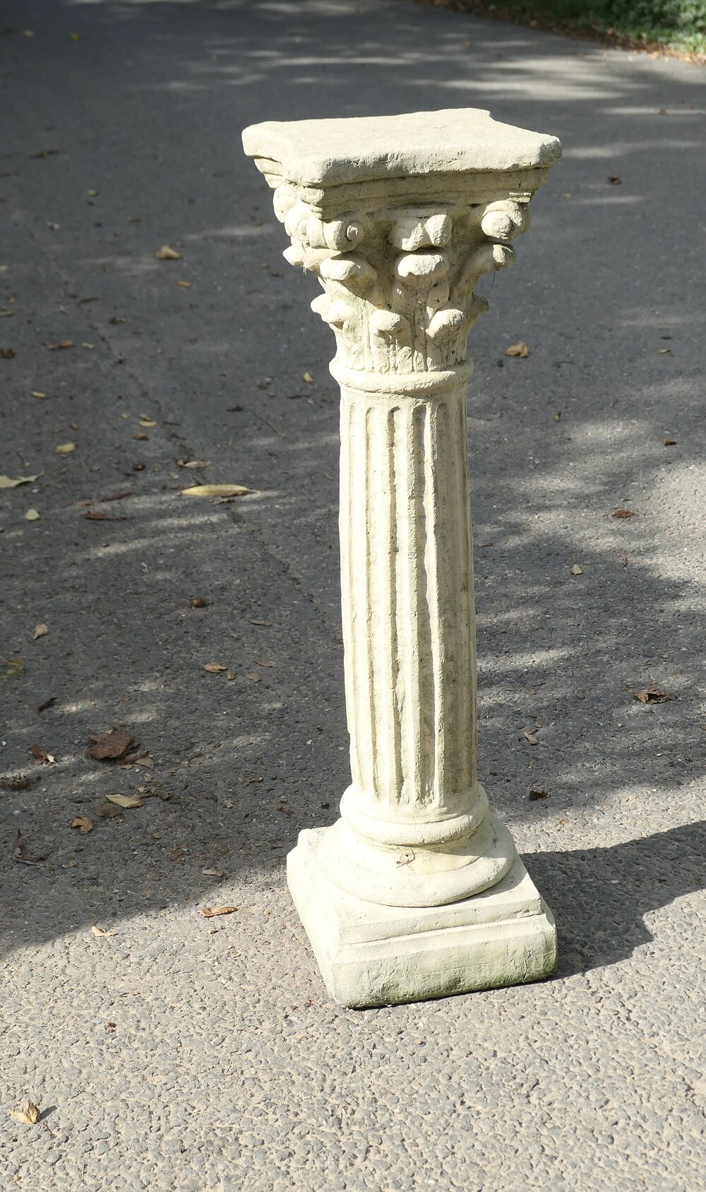 A Weathered Cast Stone Classical Corinthian Column PedestalA Superb Fluted Classical Column Pedestal, the pedestal is made in Cast Stone and has a weathered surface