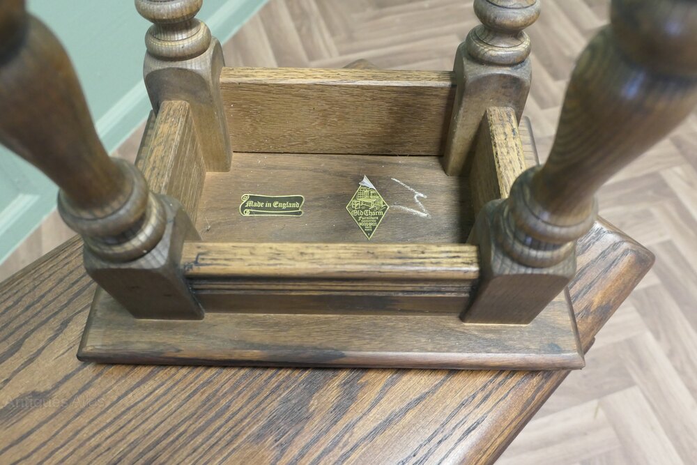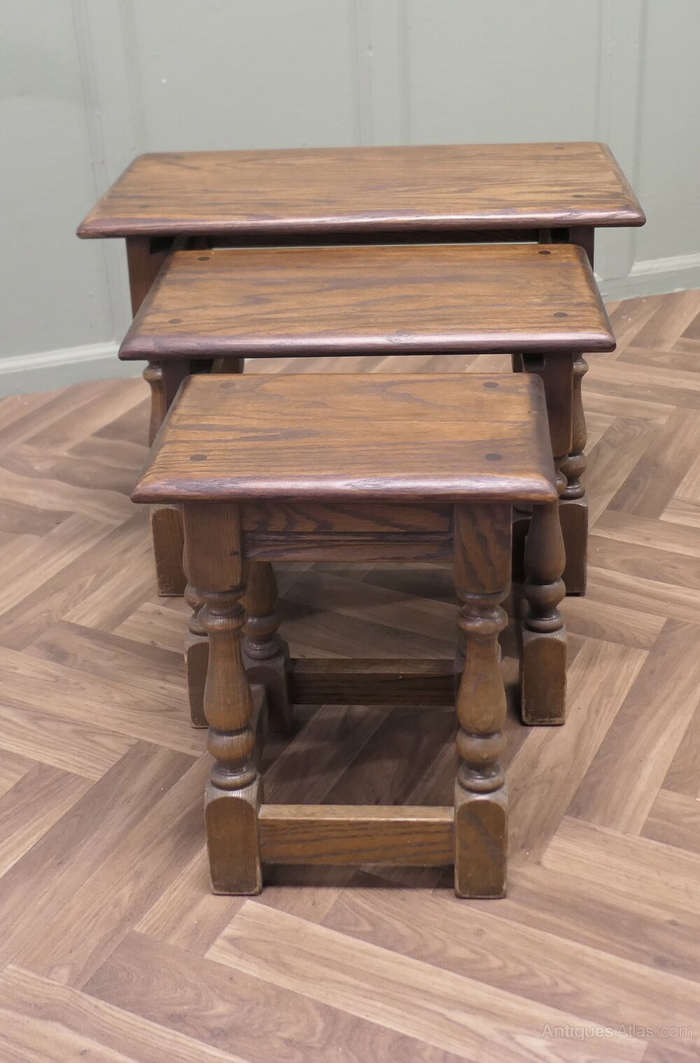 Country oak Nest of Tables by Old CharmThe nest is a set of 3 beautiful oak tables with chunky turned legs and thick pegged tops