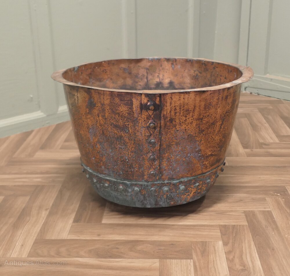 19th Century Riveted Antique Copper19th Century Riveted Antique Copper, a very robust piece with very attractive riveting, once used to heat the water and would make an excellent Log Bin or Planter