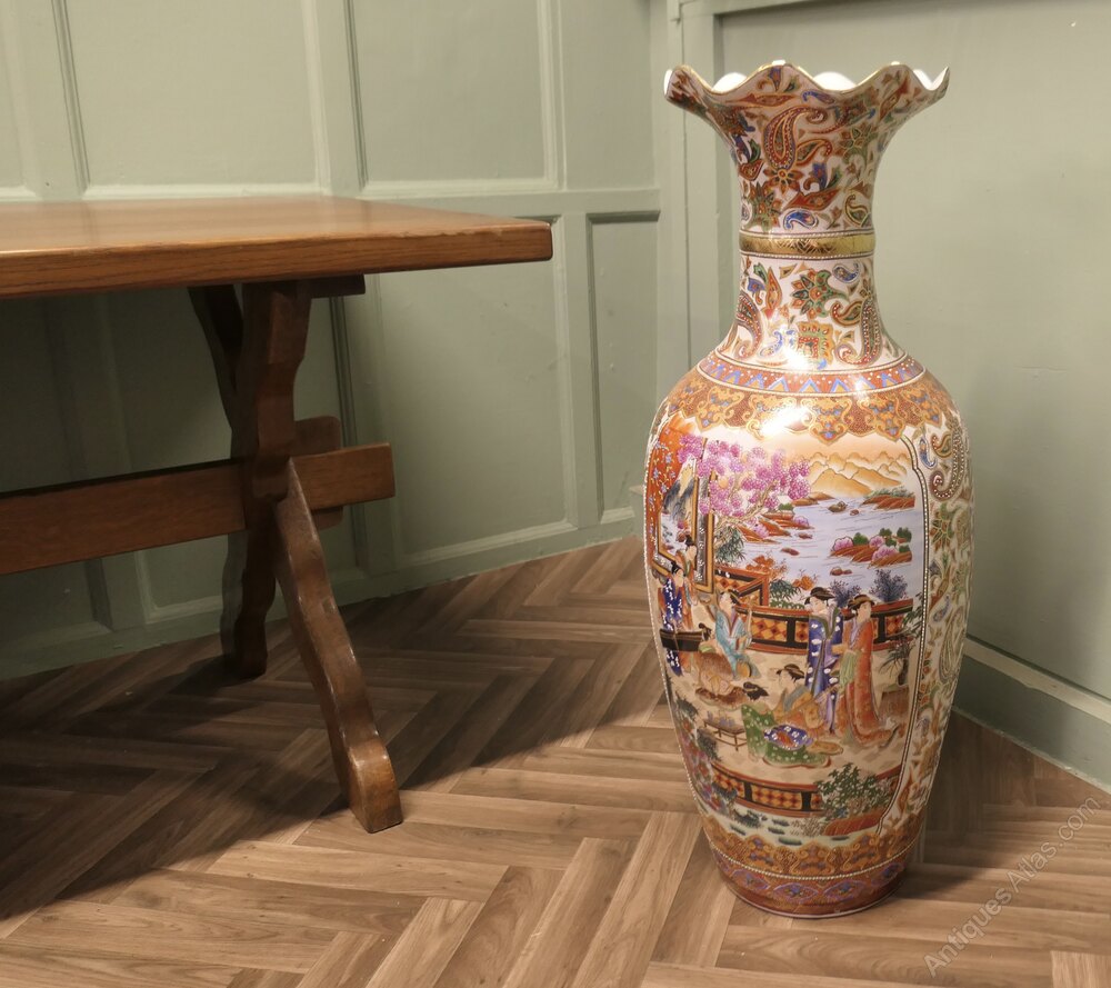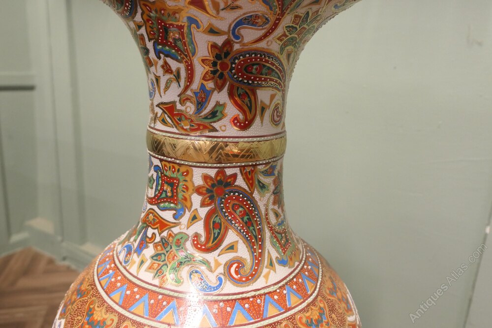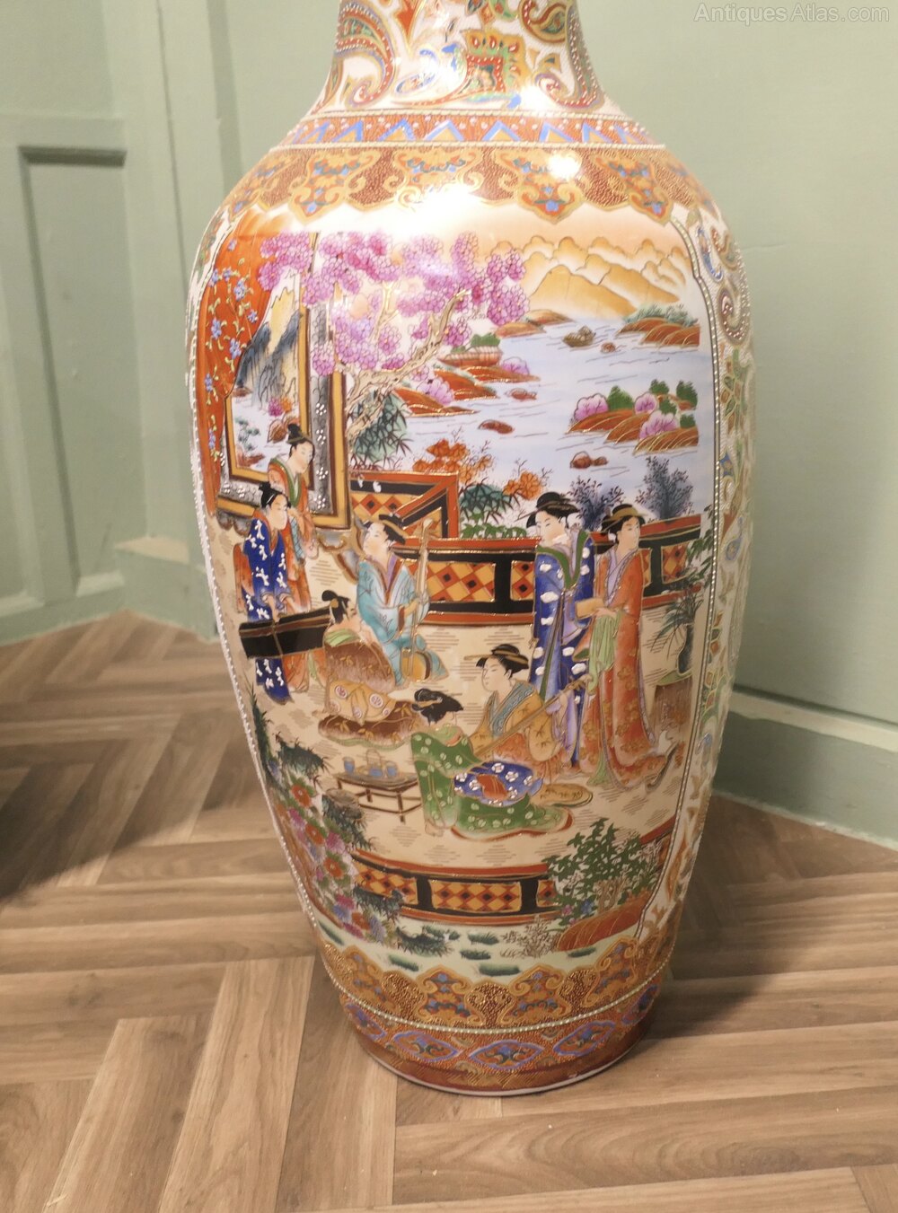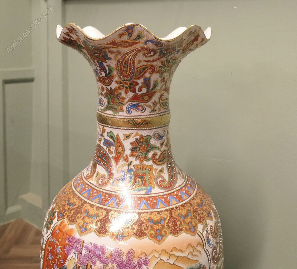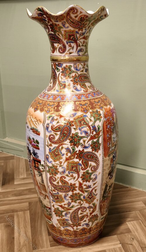 A Very Tall Oriental Ceramic Satsuma VaseThis is a superb statement piece, the vase is 3ft 6” tall and has traditional hand decoration with paisley designs and characters, the vase is in excellent condition with no damage, slight scuffing to the underside only.