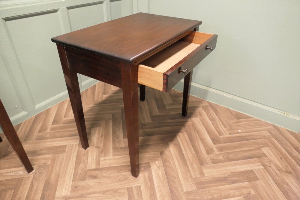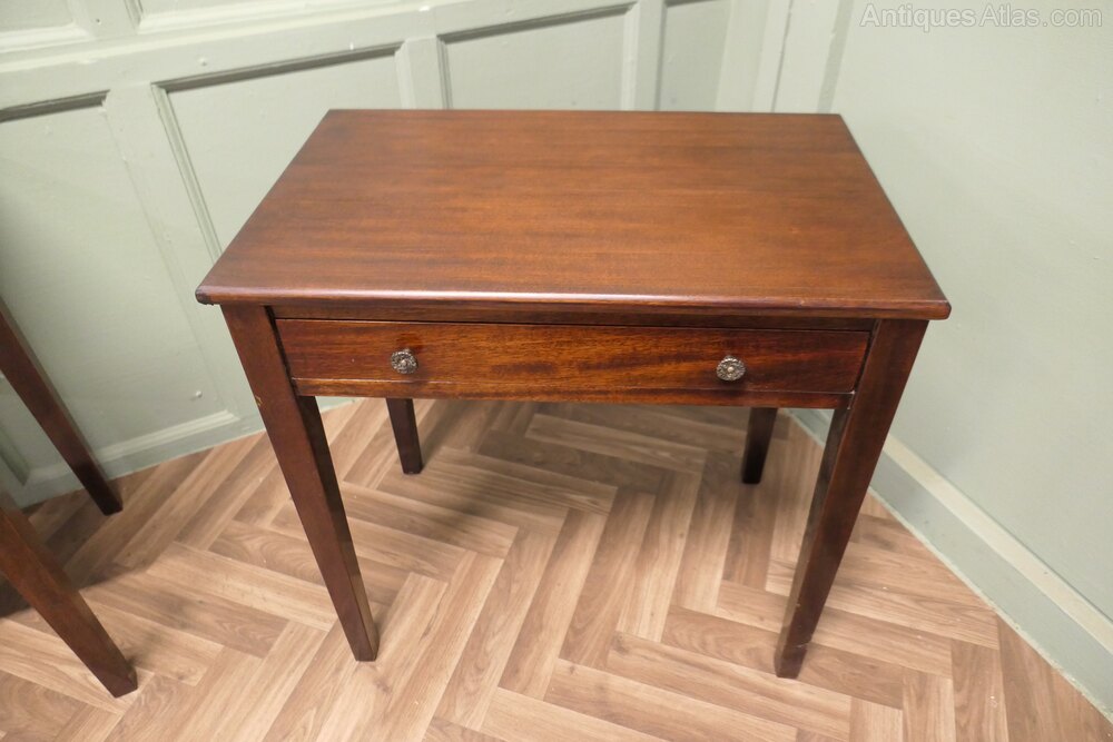 A Pair of Writing or Side TablesThese are not very large but very attractive tables, they each have a smooth rectangular top, slightly tapering legs and a long drawer at the front