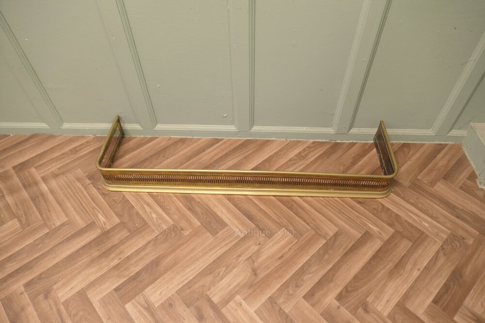 Long 19th Century Pierced Brass FenderThis is a good Victorian Pierced Brass Fender and unusually longer then most, it has a twin piercing along the front and sides