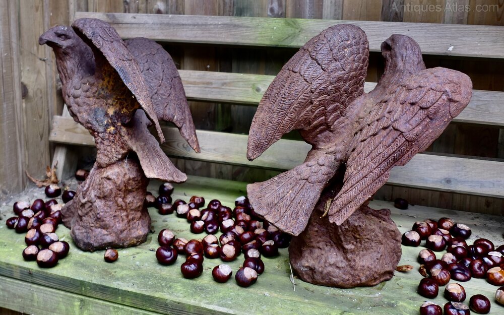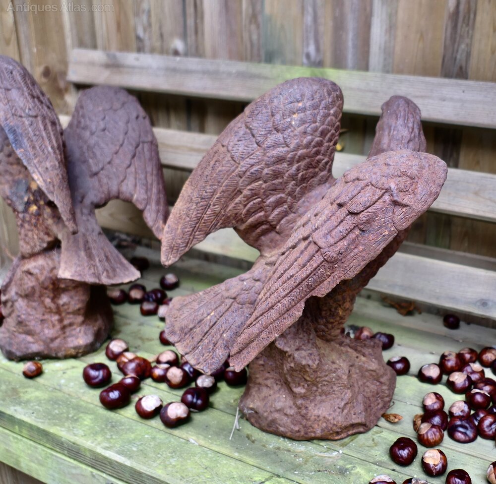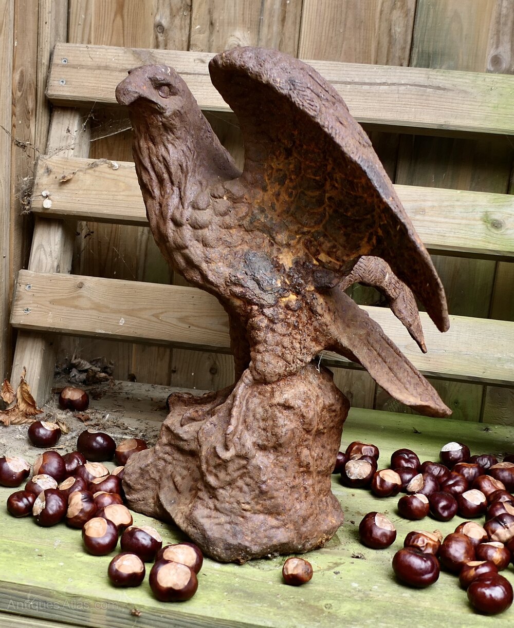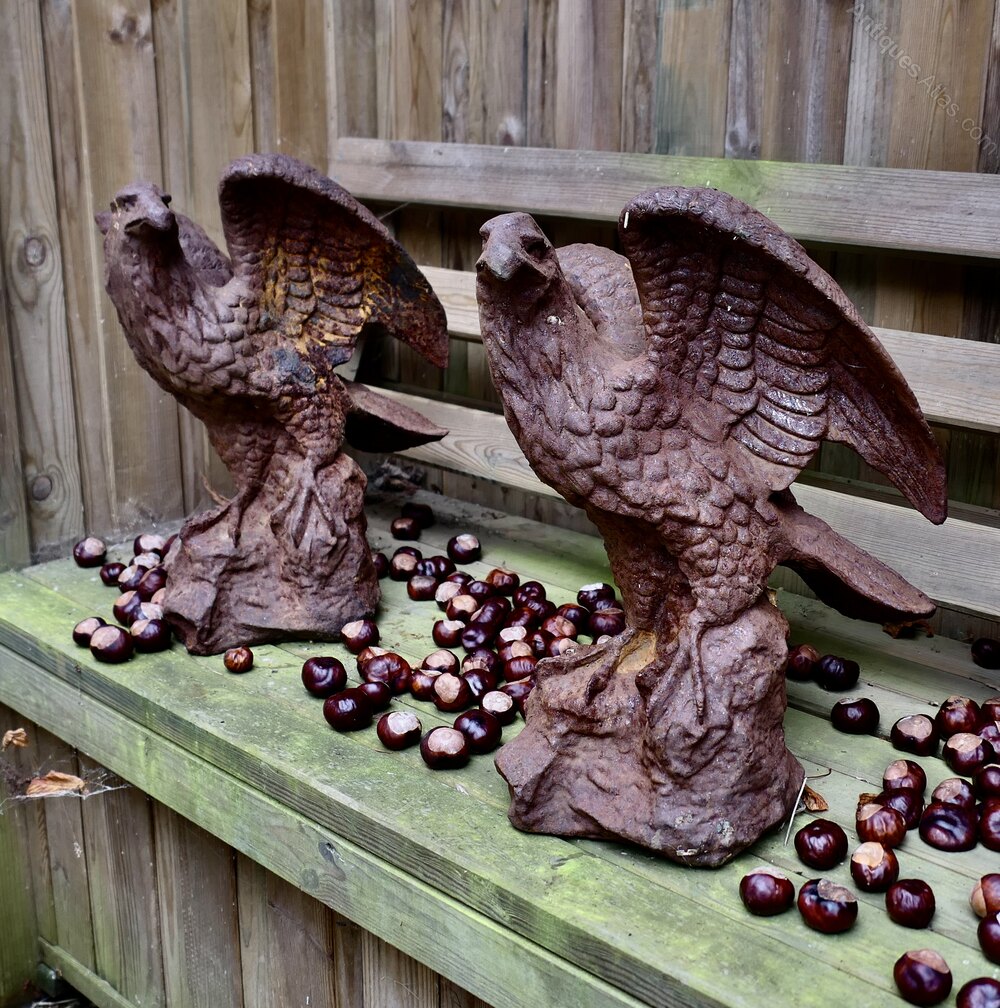 2 Old Weathered Cast Iron Eagle Statues.These lovely Eagles have beautiful detail to the feathering and facial expressions, they are on the rusty side but sound and in good all round condition