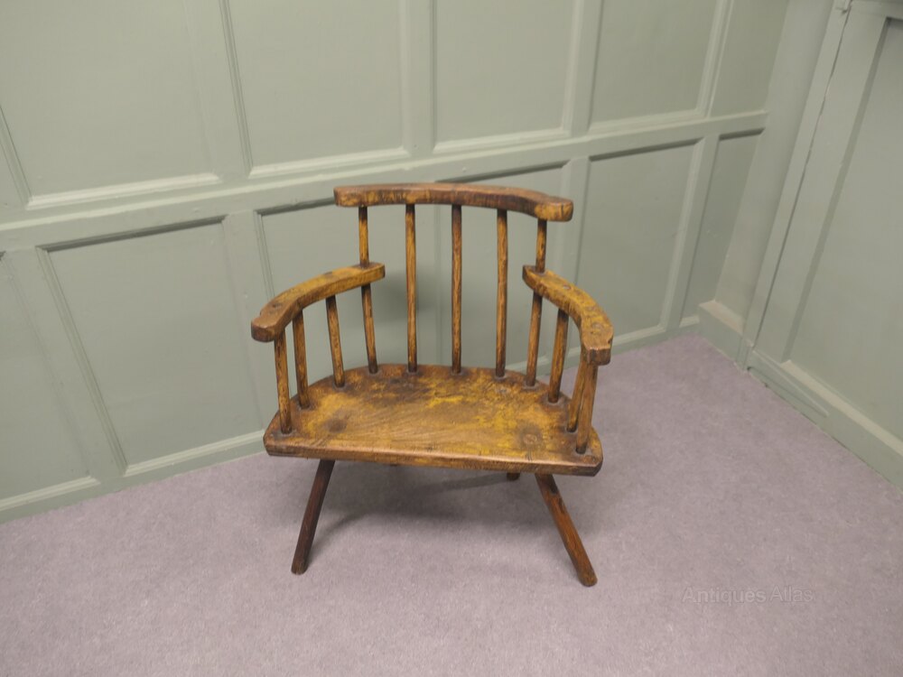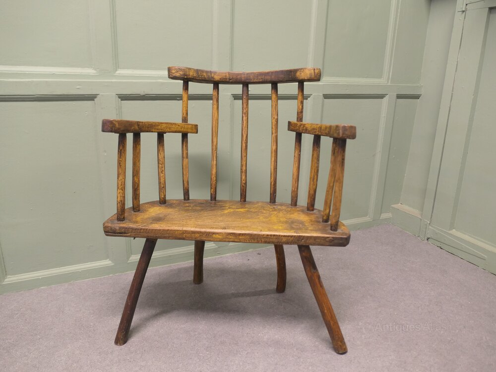 A Primitive 18th century Country Comb Back ArmchairA primitive Comb Back 18th/early 19th century, possibly West Country or Welsh, with a thick solid half moon seat seat on sturdy stick legs