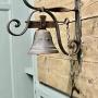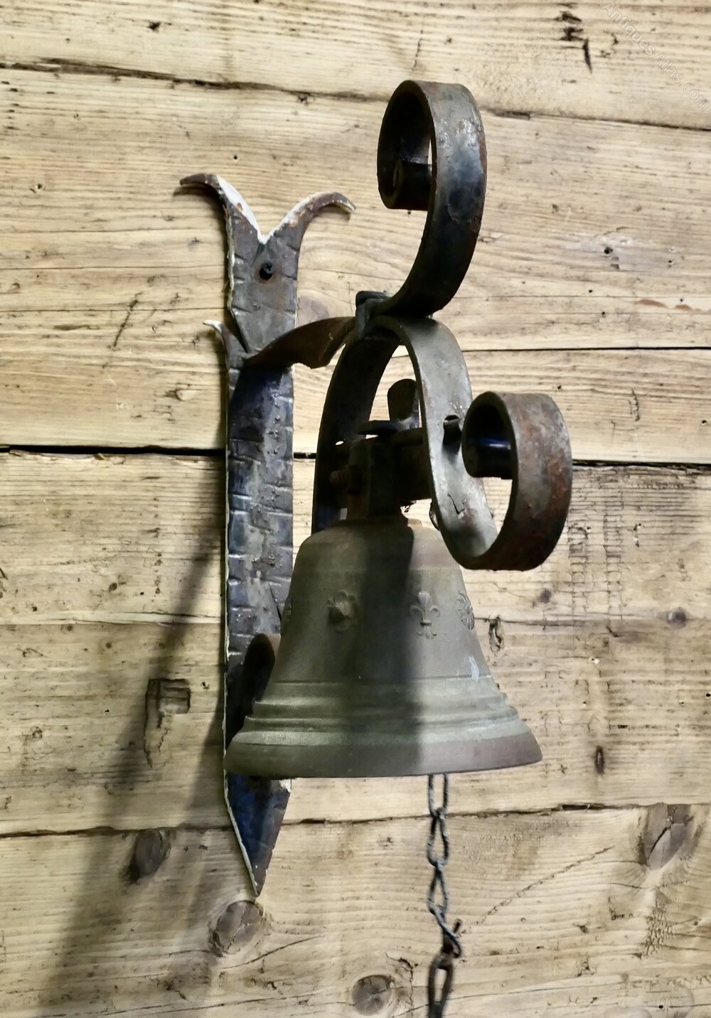 19th Century Bronze Alpine Front Door BellThis is a delightful item, the bronze bell is housed in a wrought iron frame, it is suspended on a rocking bracket and rung by pulling the chain, the chain also has a bell hammer so that the bell can be rung by striking with the hammer on the end of the chain.