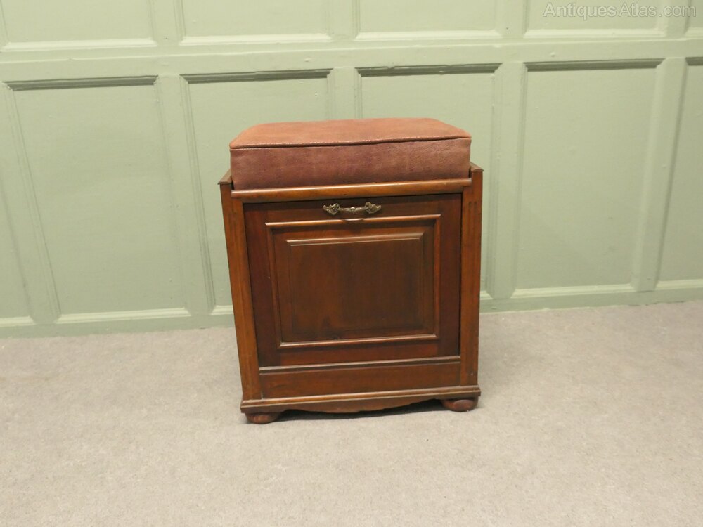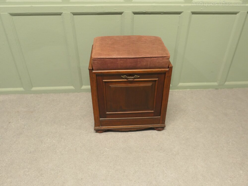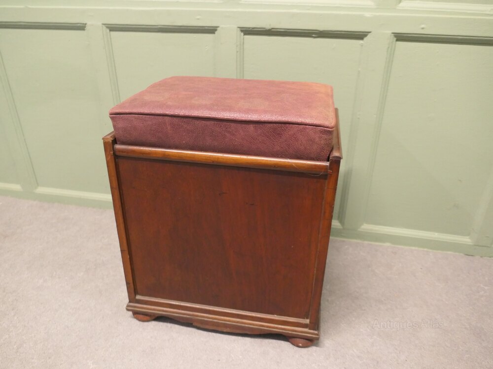 Victorian Walnut Upholstered Fall Front Piano StoolA lovely looking piece, the stool is a rectangular shape with a drop fall front divided into storage for sheet music