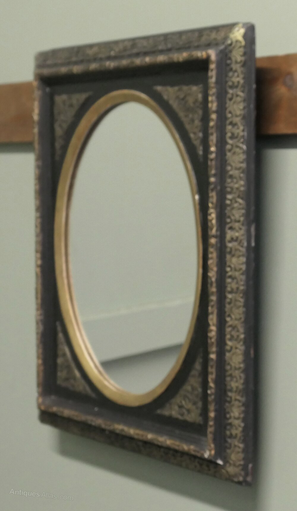 Stunning French Empire Gilt Brass and Black Lacquer Wall MirrorThis is a wonderful piece, the deeply moulded rectangular stepped frame is decorated with a 4” wide pierced brass border,