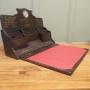 The cabinet has several storage sections for leaflets postcards etc. at the back, it may have been displayed in a Hotel Foyer or similar. At the front there is a writing space with blotter, this can be folded away when space is needed