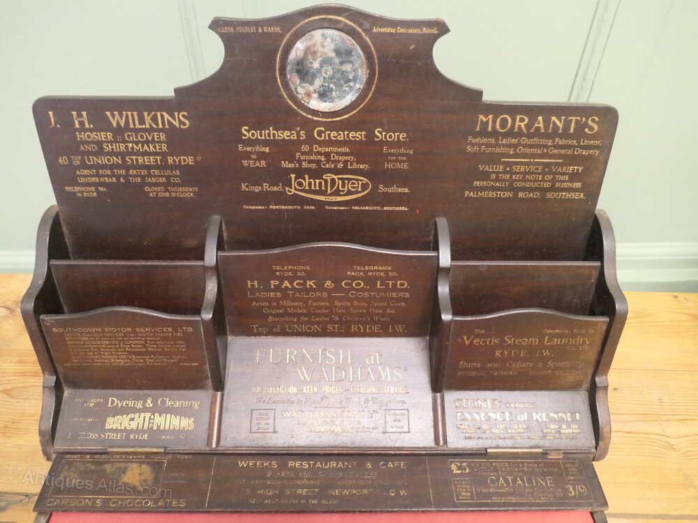 A Charming Victorian Postcard or Stationary Stand, South CoastThis is a very attractive piece, the box is made walnut and is sign written with local advertisements