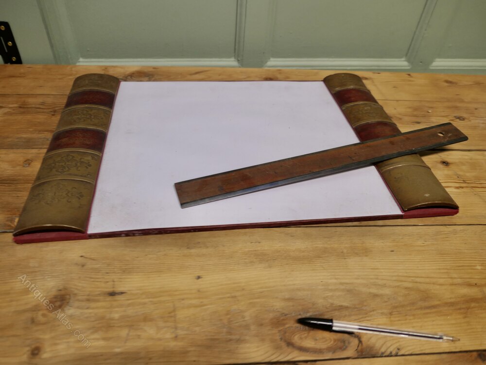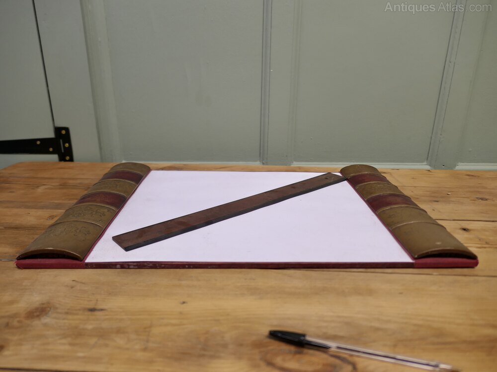 A Large Desk BlotterA great piece of desk furniture, the blotter has simulated book spines in gilt and burgundy leather, and it also comes with a Matching Stanley ruler
