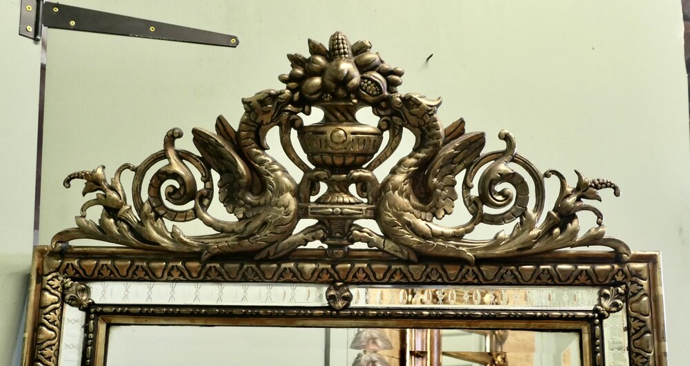 French Black and Gilt Wall Mirror, Dragons Crest