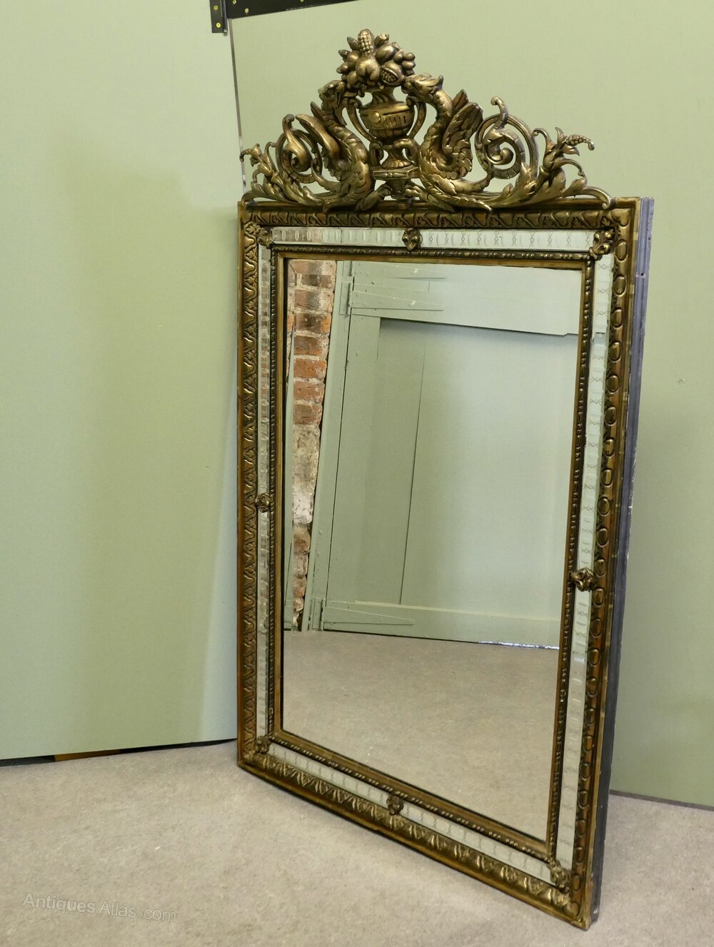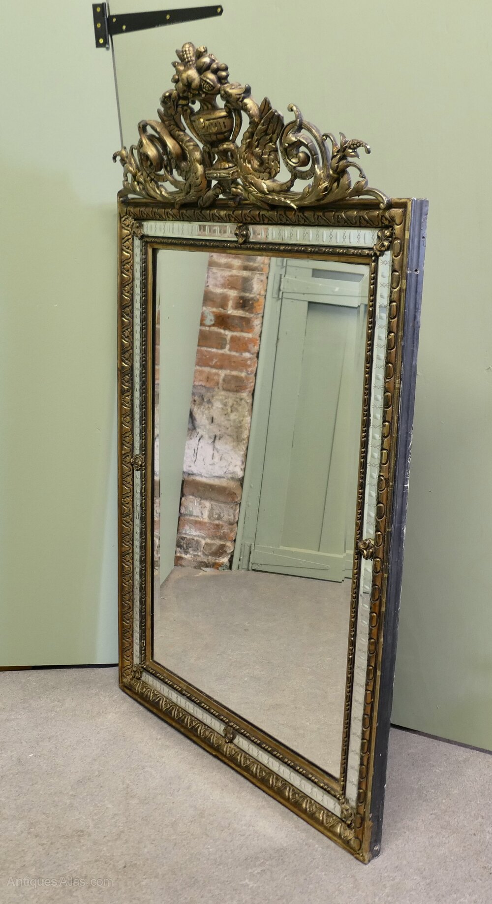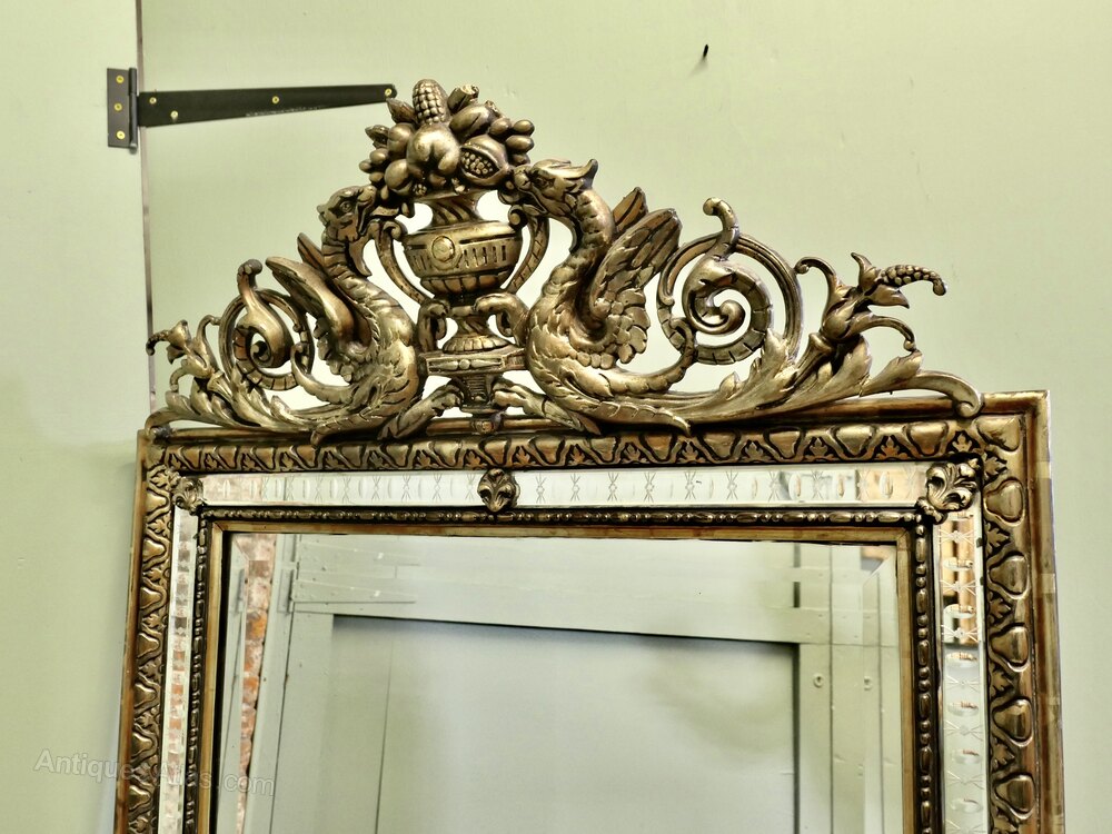 This is a charming Wall Mirror a genuine example of 19th French chic furnishing, the mirror is in good condition, it is 59” high and 35” wide