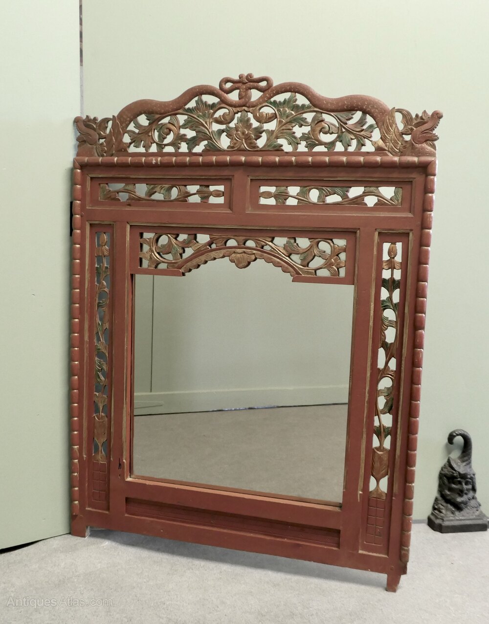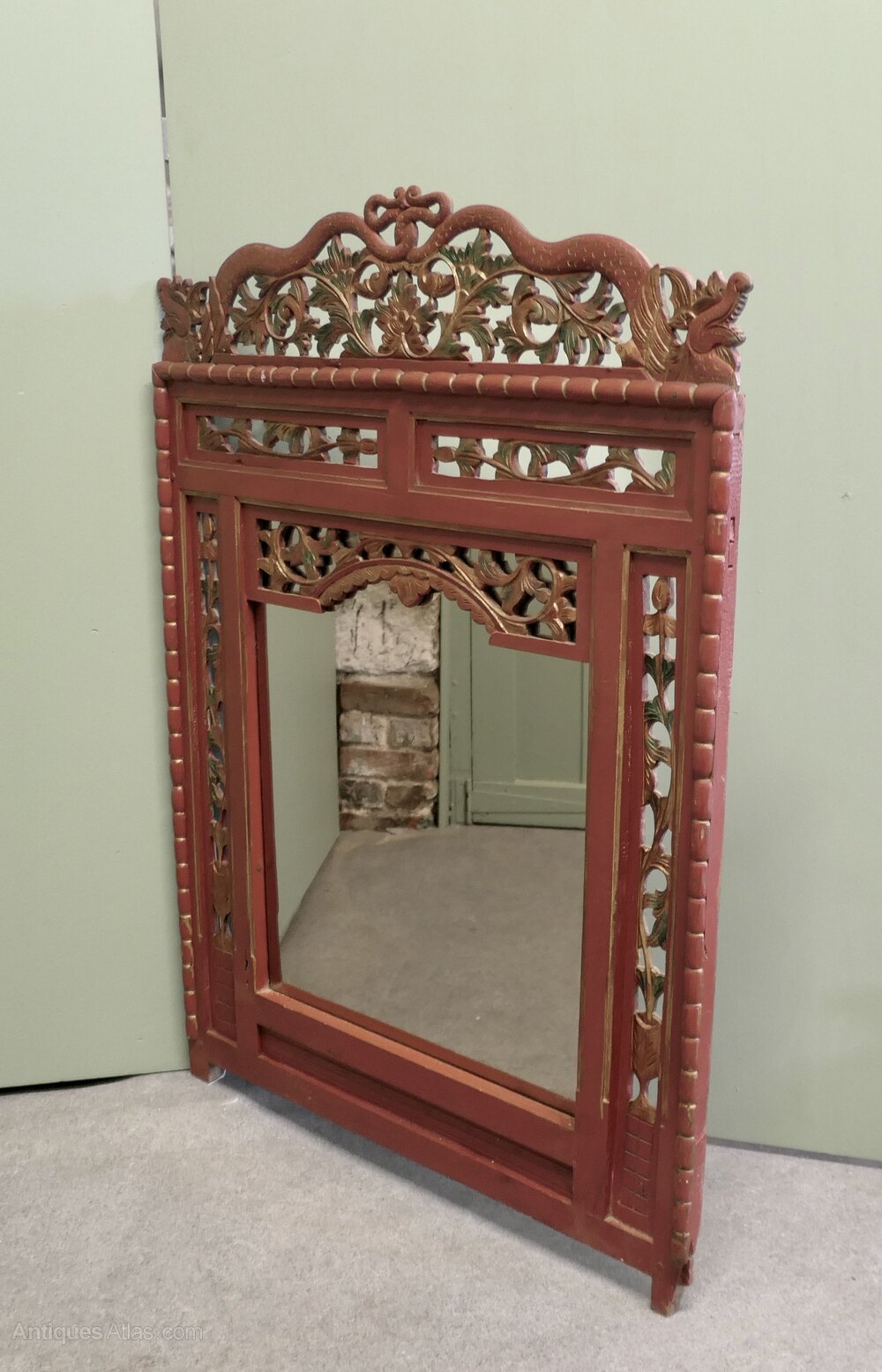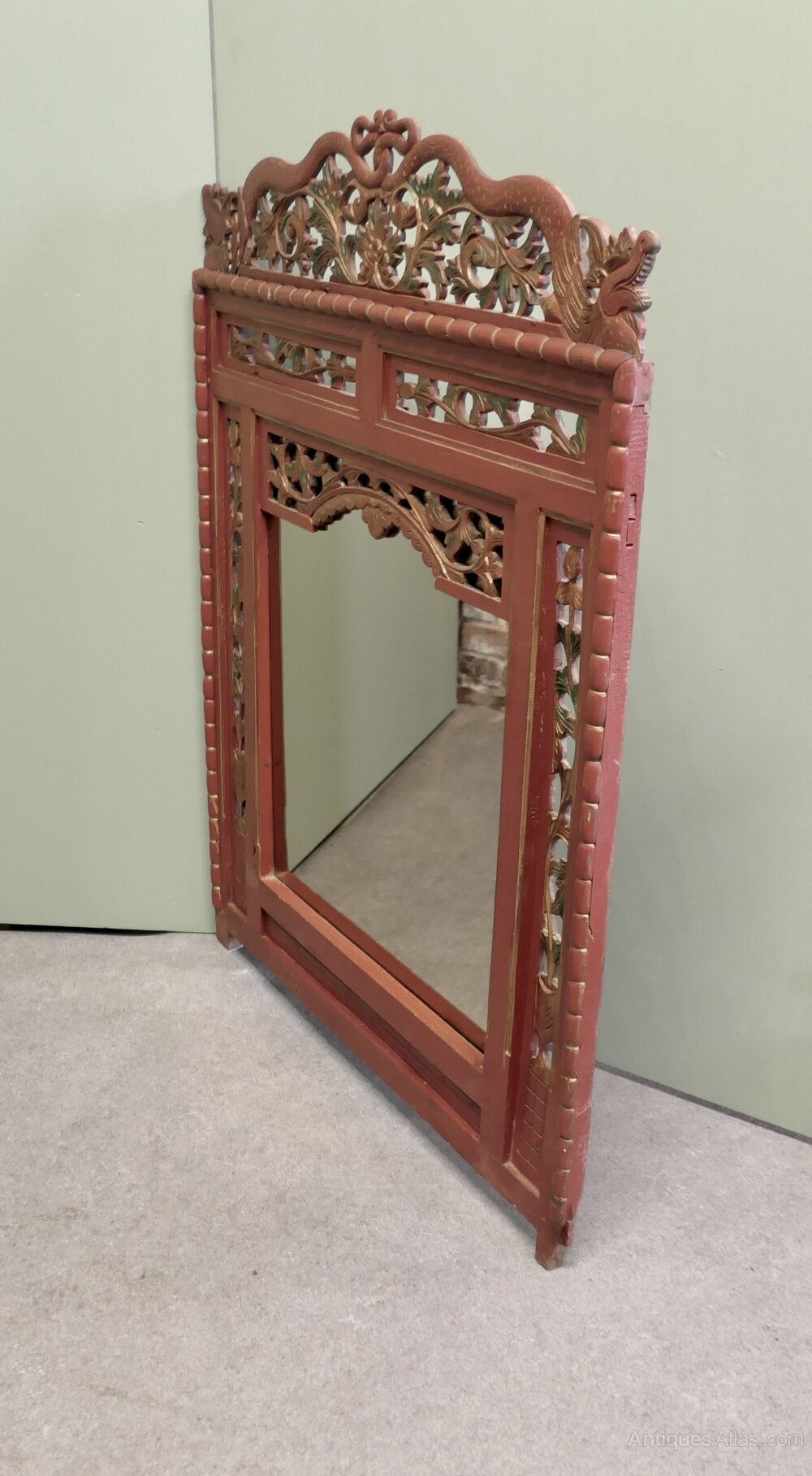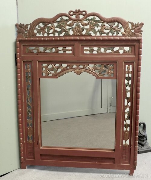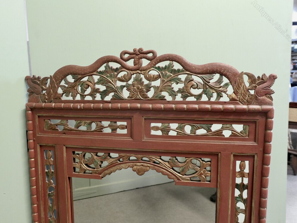 19th Century Oriental Painted Red Lacquer MirrorThis is a very attractive 19th Century Painted mirror Frame, it is painted mainly in Red Lacquer with carved and painted decoration