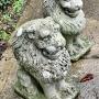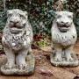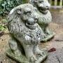 Pair of Stone Lion GuardiansThese are weathered Statues of 2 Lions, they are rounded chunky beasts with an oriental appearance