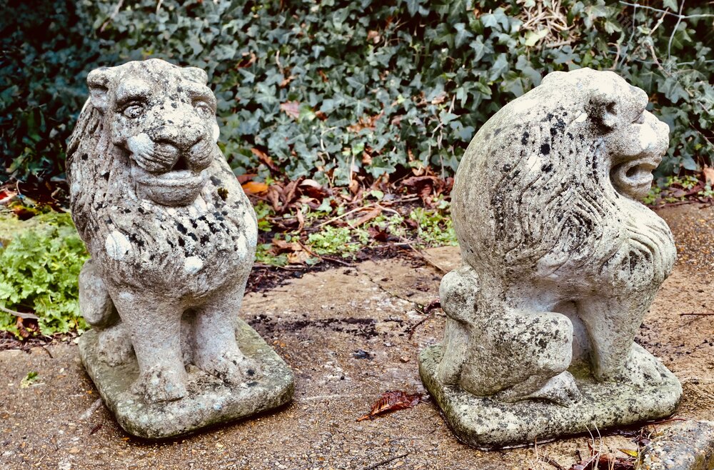 The pair are sound and are attractively weathered, they are 20” high and sit on a 13” x 10” plinth
