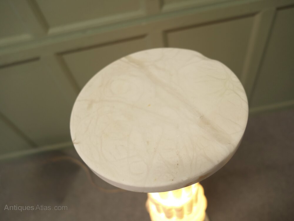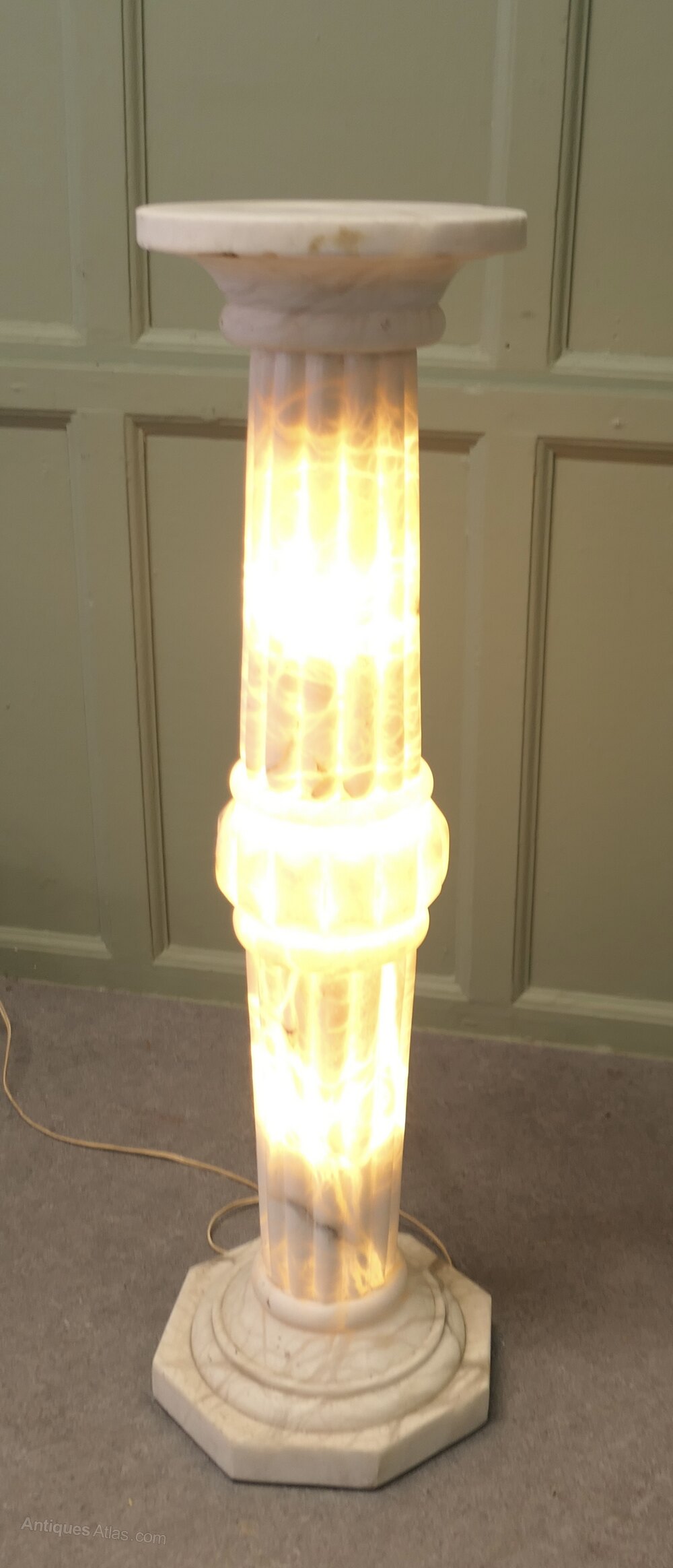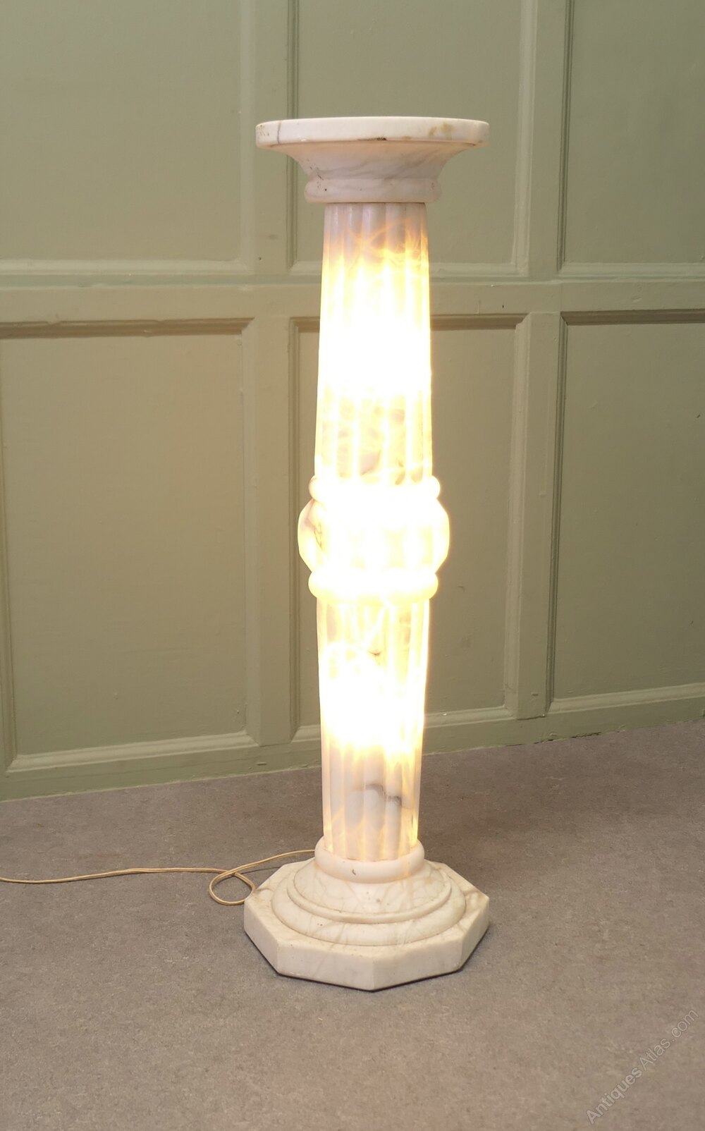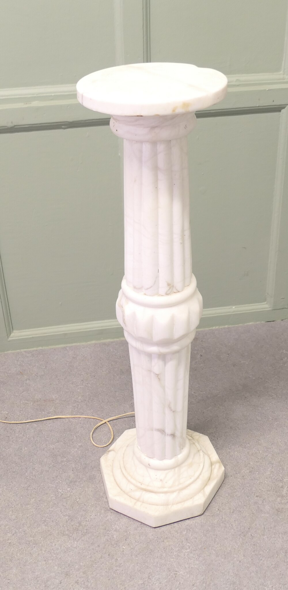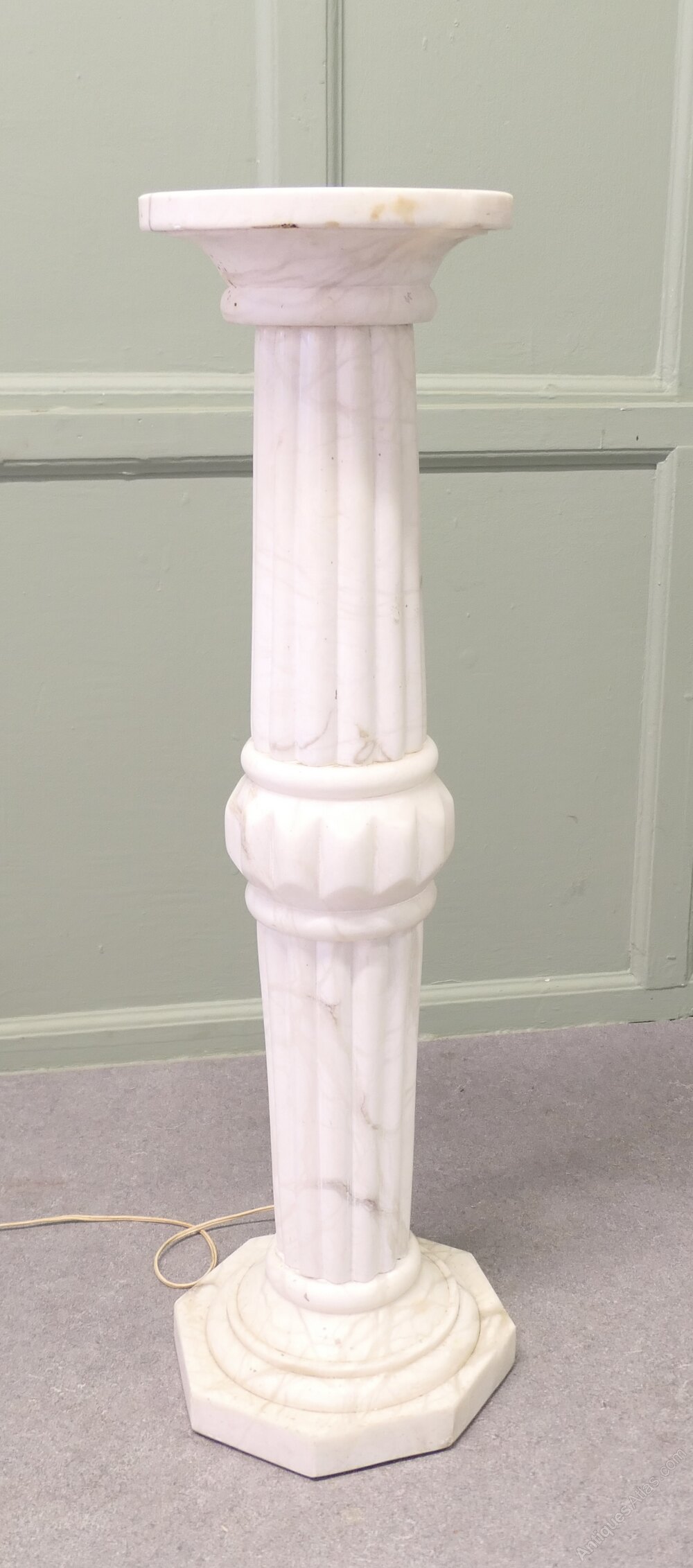 19th Century French Marble Illuminated Torchere ColumnThis large French white marble pedestal is hollow allowing it to be lit from the inside, the column has a stepped octagonal base fluted with a central baluster leading up to a flat round platform top.