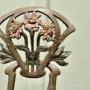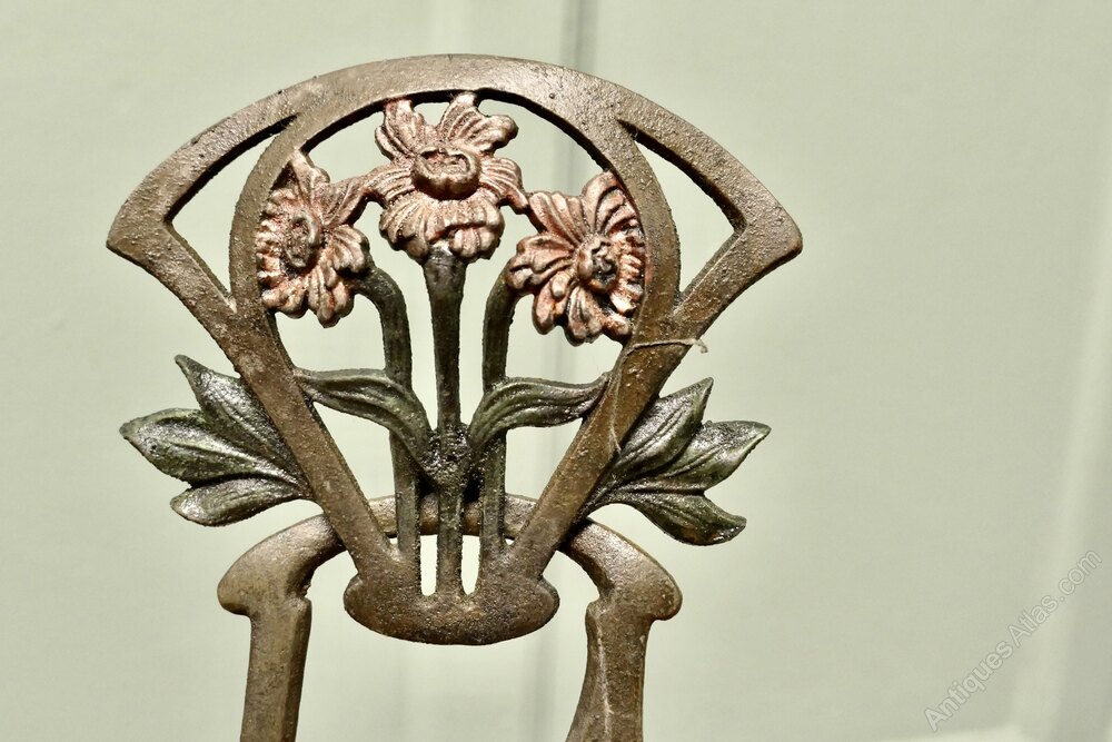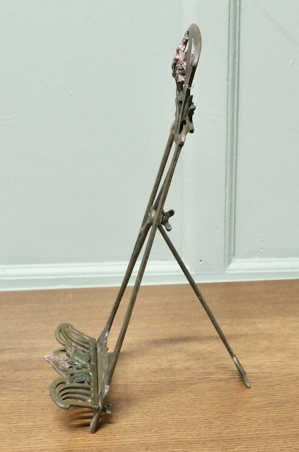 French Tolewear Table Easel or Book RestThis is a very attractive piece it is made in iron and has decorative detail mostly on the top and on the rest at the bottom of the stand, this is decorated with flowers and highlighted with verdigris and copper paint work