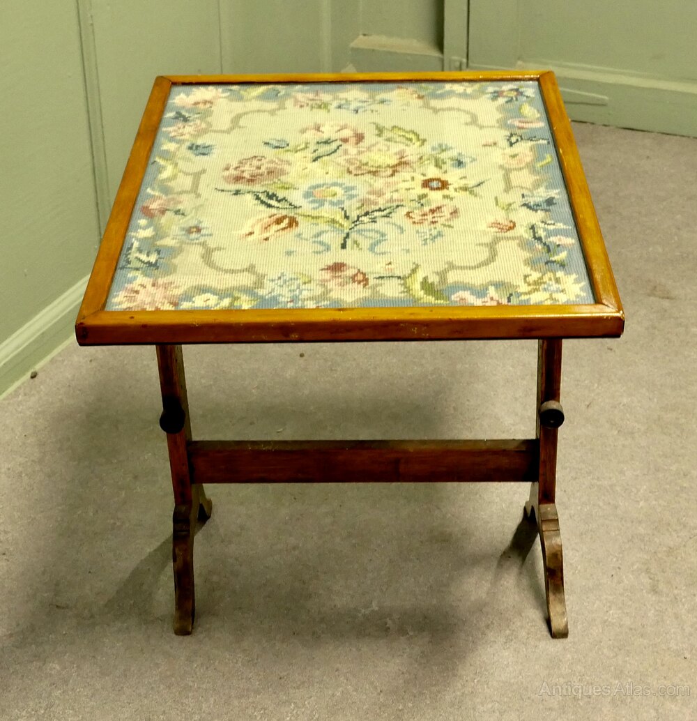 Metamorphic Embroidered Fire Screen Occasional TableA Superb expertly hand embroidered tabletop which tilts and can be turned into a very attractive fire screen