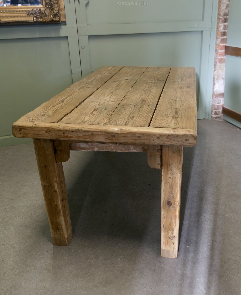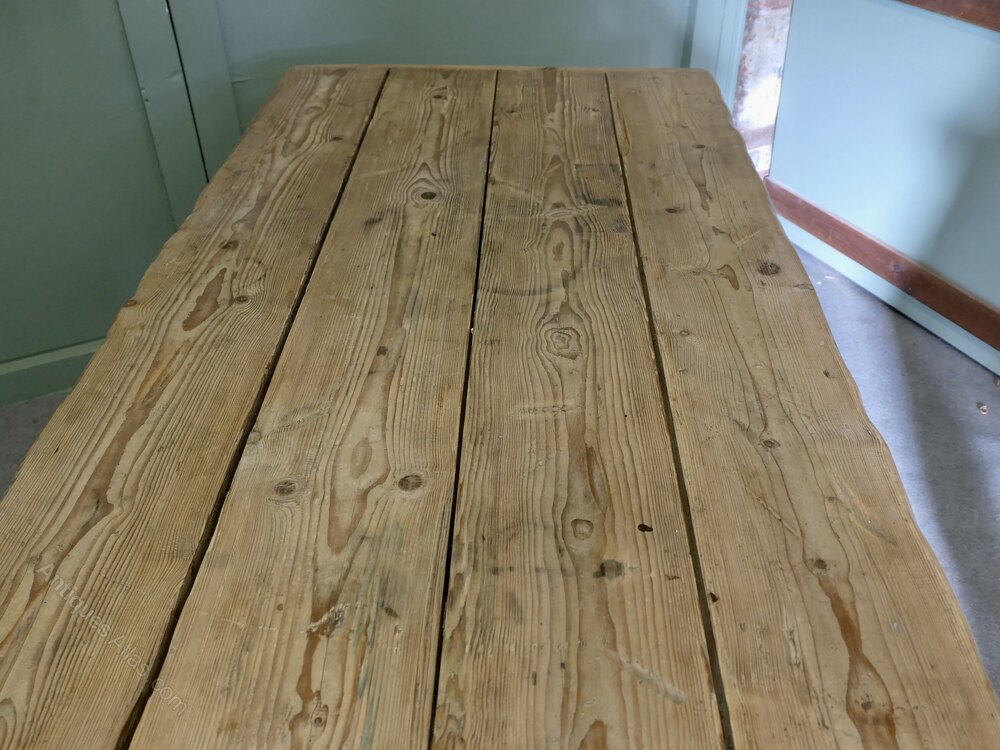 Victorian Rustic Pine Kitchen Dining or Work TableThis is a very substantial piece, it has been rescued from a workshop in its original condition, the pine is smooth and worn, it has never been painted or stripped.