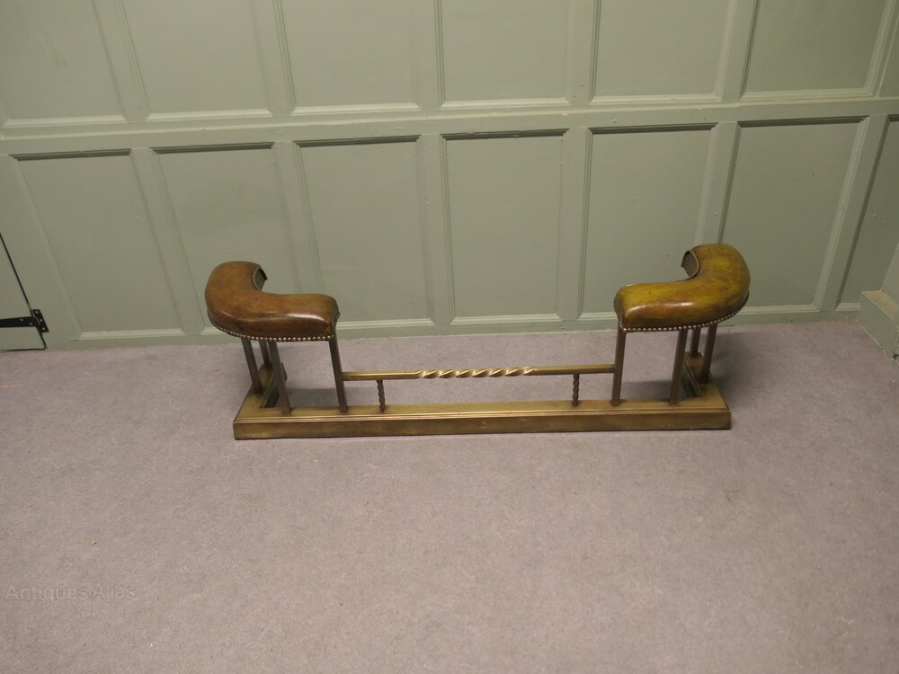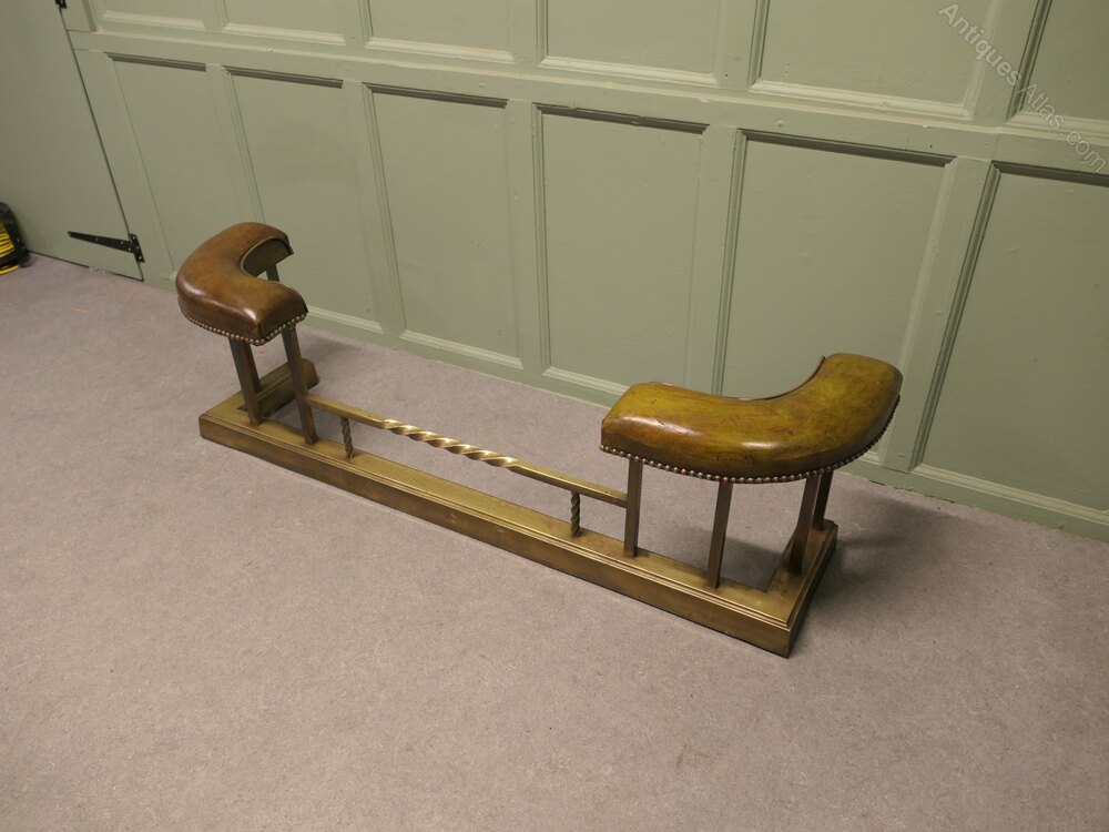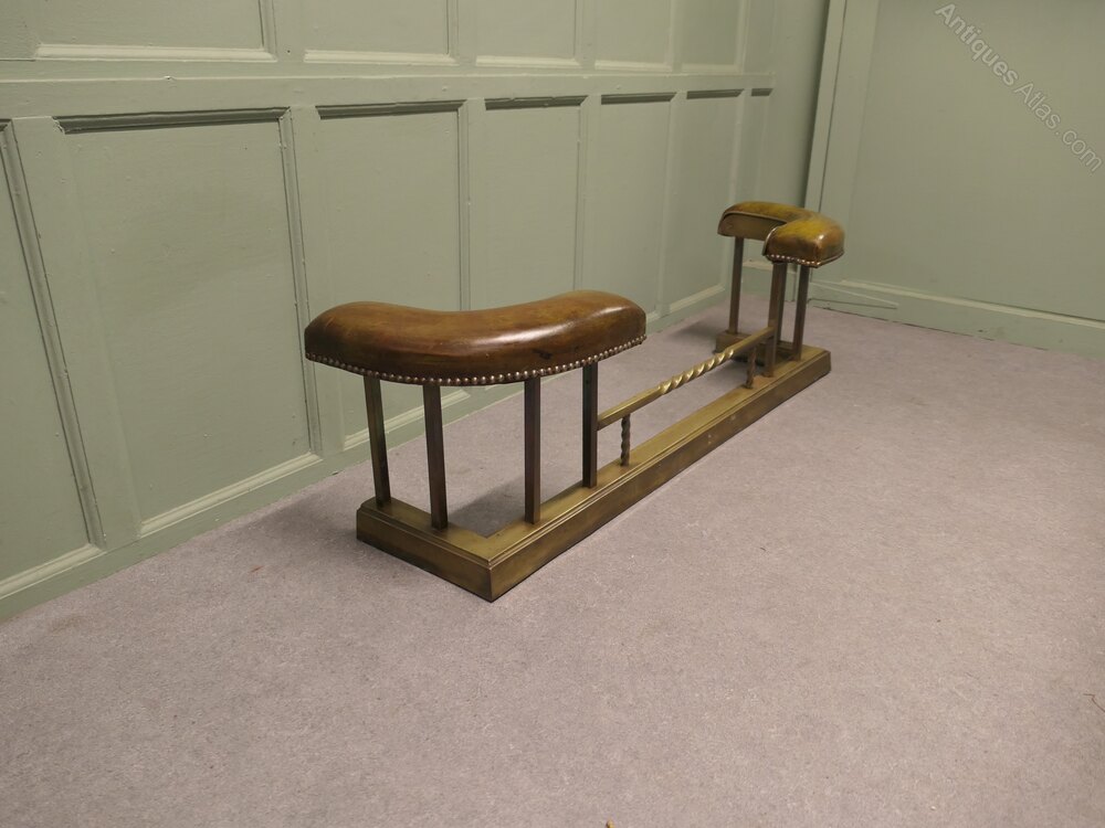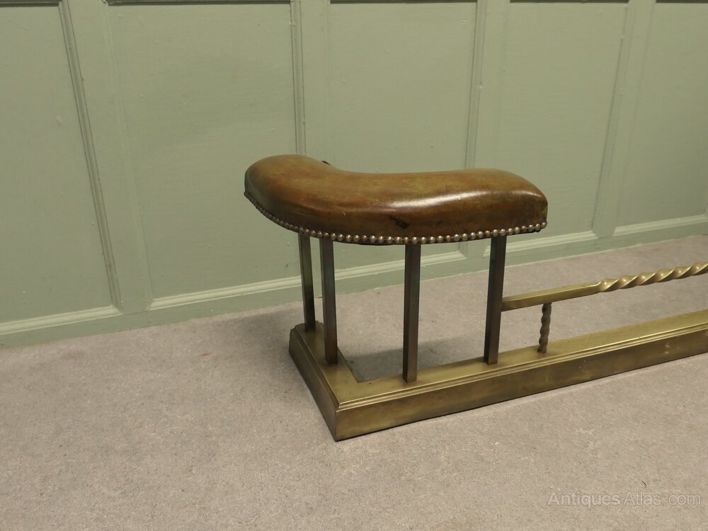Brass Dark Green Leather Art Deco Club FenderThis is a very luxurious piece, it is made in Brass and has original beautifully patinated Sage Green Leather upholstered seats, unusually these have a very neat curved and studded edge