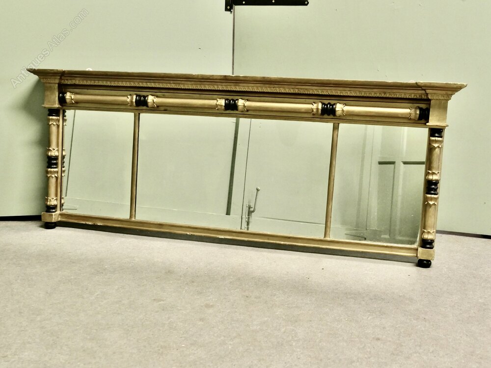 Regency Triple Plate Gilt Mirror or Over MantleThe Regency carved Frame is a rectangular shape, it has decorative Gold and Black columns at either side and along the top