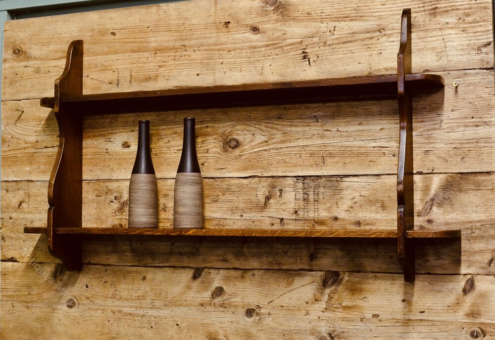 Mid Century Wall Hanging ShelvesThis charming little shelf unit is made in elm it has 2 shelves both have a plate groove