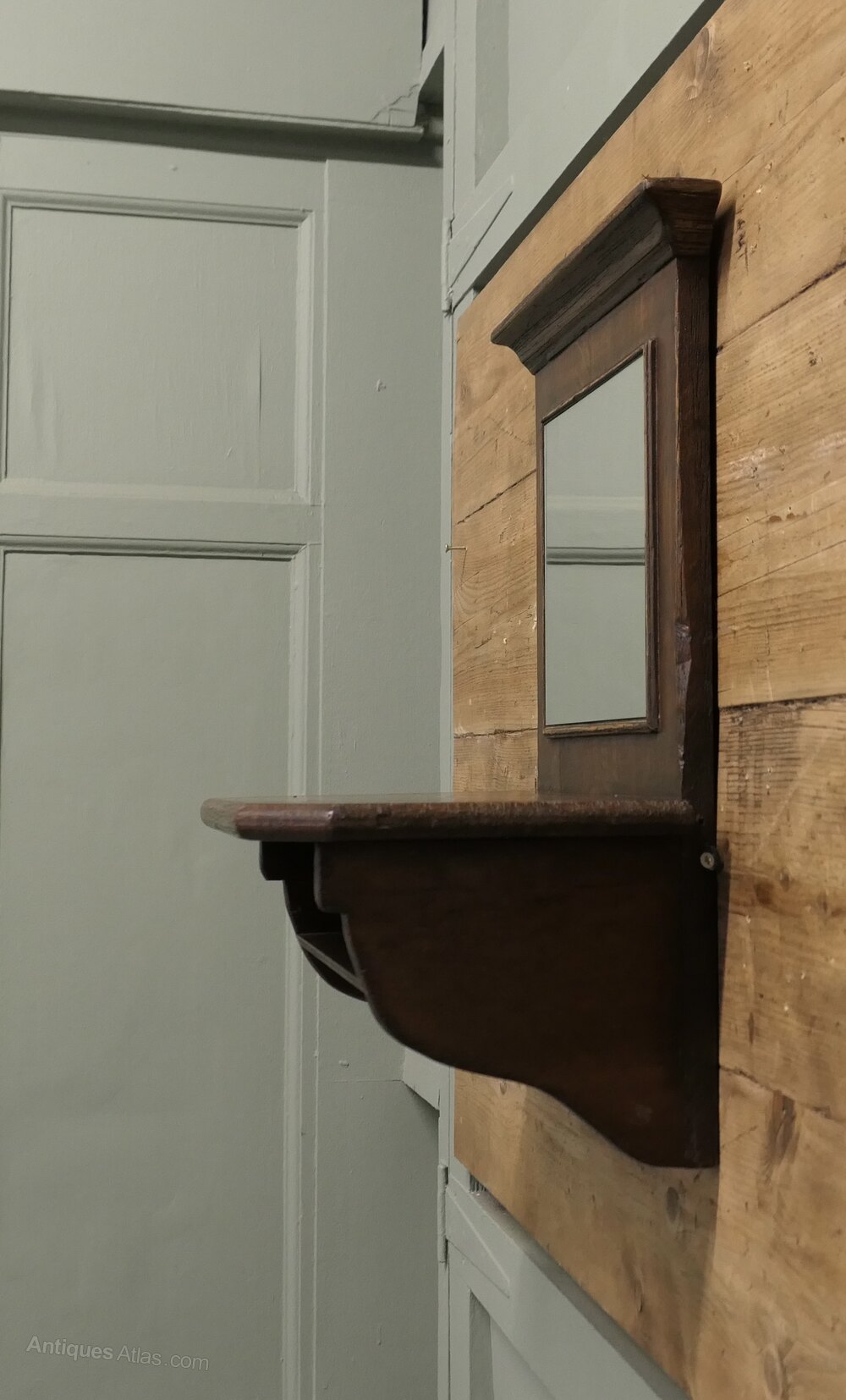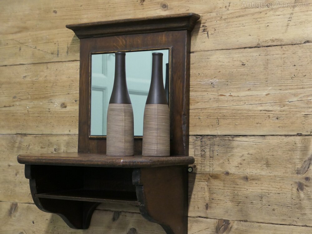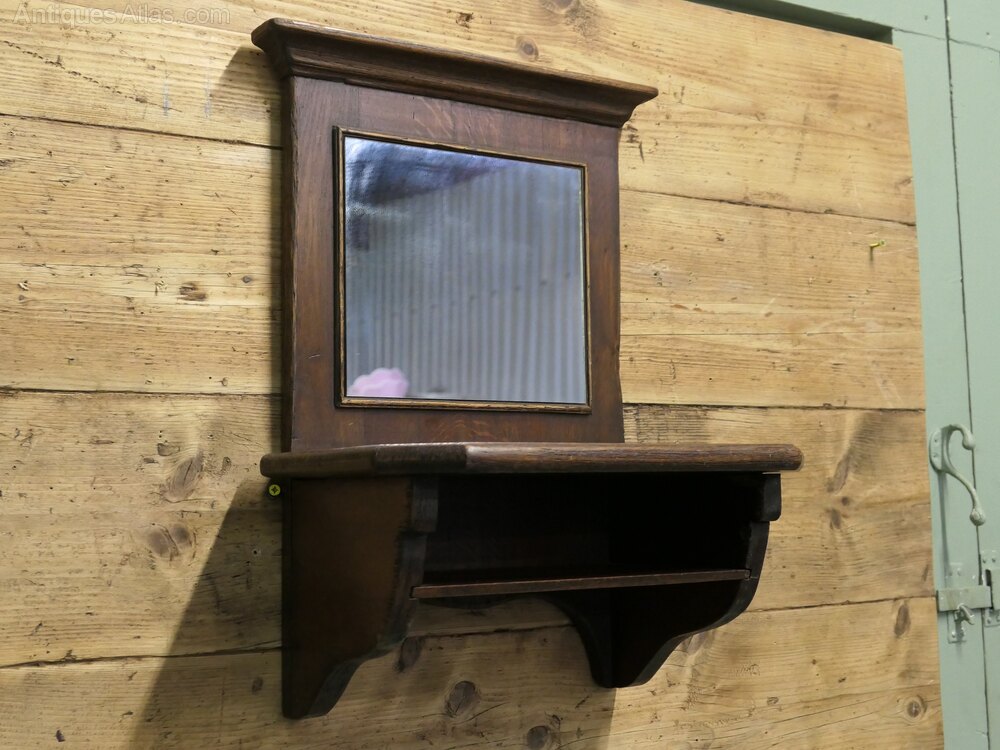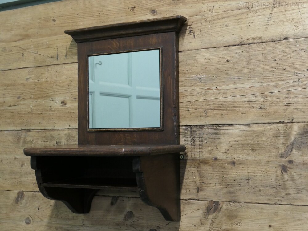 Oak Wall Hanging Cloakroom Mirror with Shelf, Cloakroom or BathroomA useful piece for bathroom or cloakroom, the mirror frame with the shelf is made in Oak