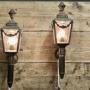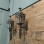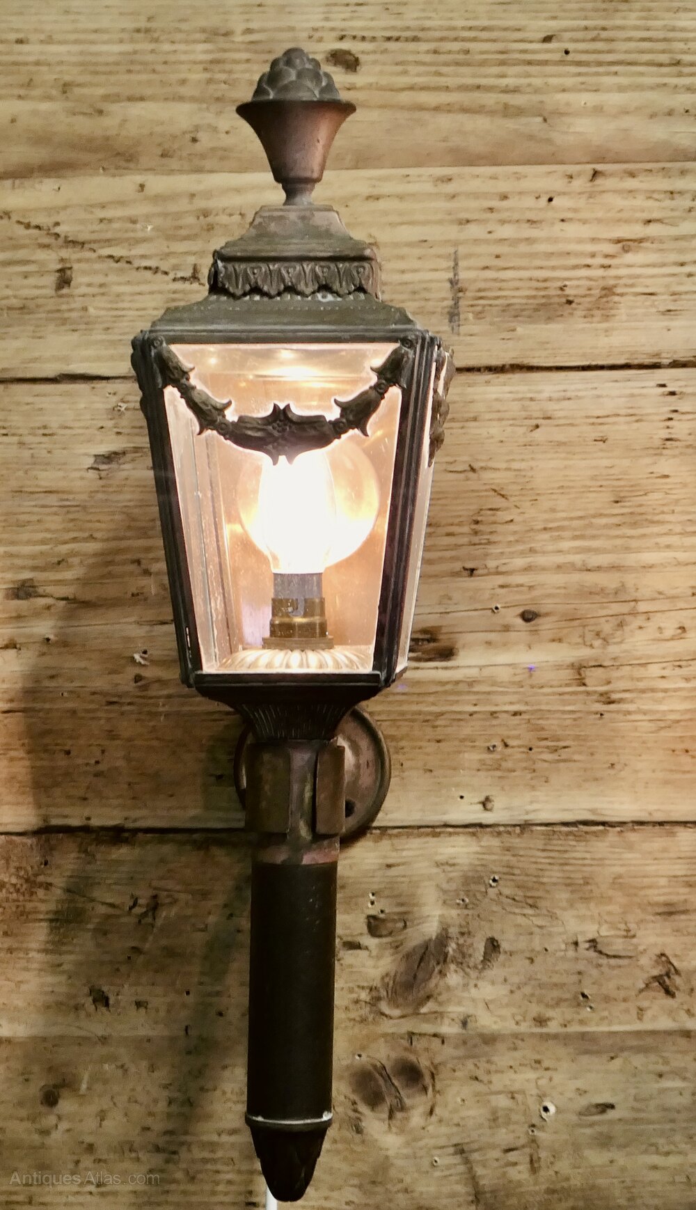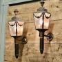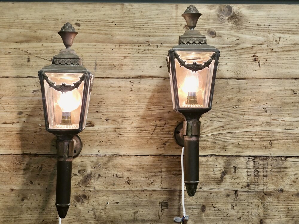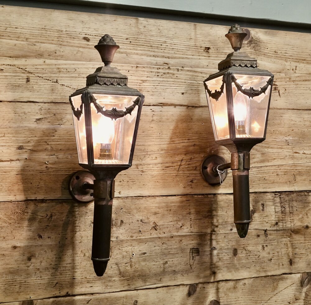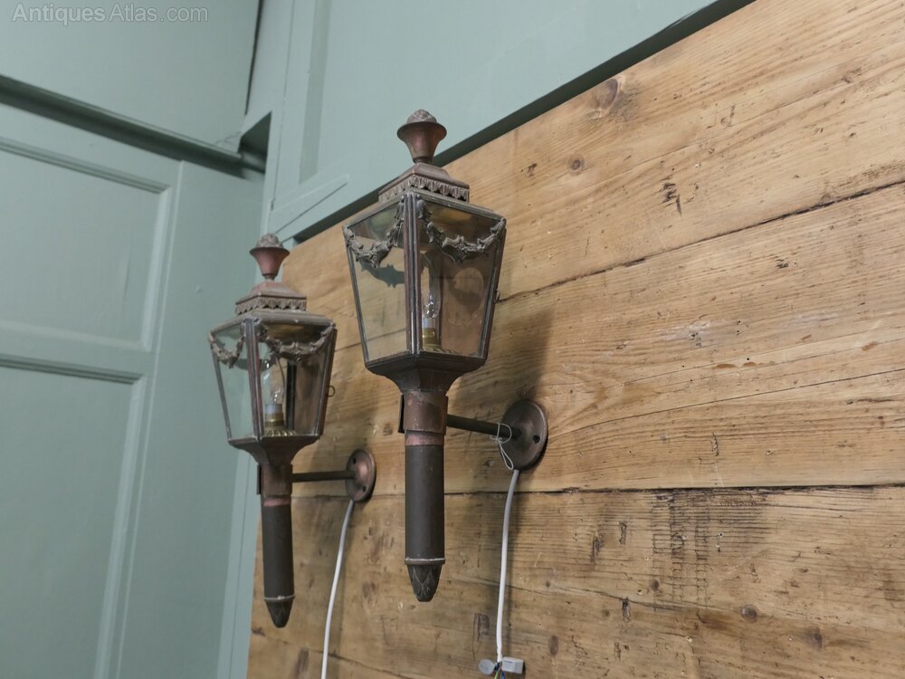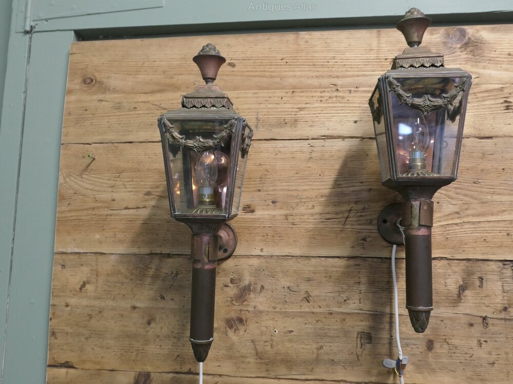 A Pair of French Empire Style Brass Carriage Lights, Wall LightsA pair of 19th Century Brass Carriage Lights these are very decorative pieces with swags and flames to the top they have been converted to electricity