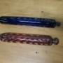 Two Victorian Nailsea Glass Rolling Pins One Blue