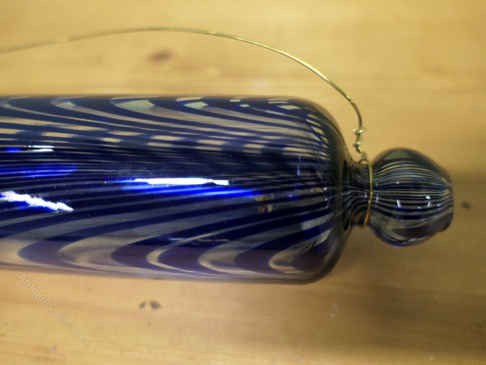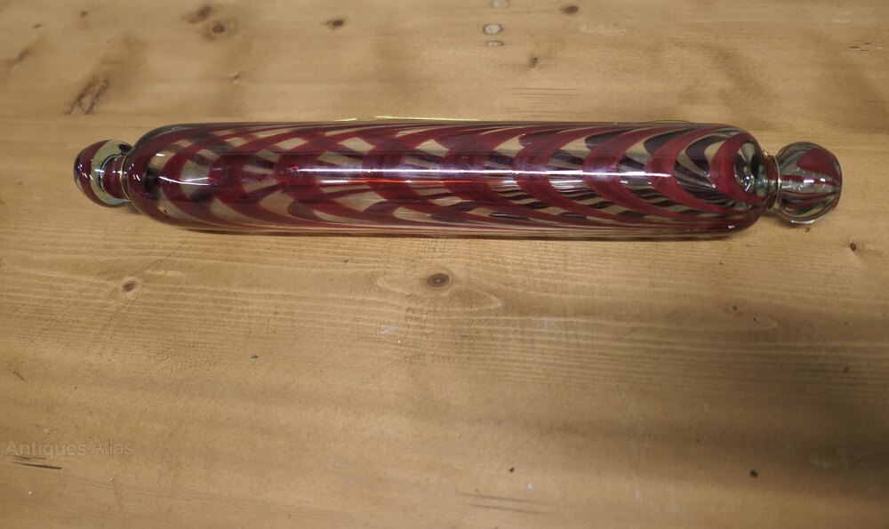 Two Victorian Nailsea Glass Rolling Pins One Blue & One Red2 Victorian Nailsea glass rolling pins one Blue and the other Red, circa 1880, a wonderful find and unique pair, the Red rolling pin is slightly smaller then the blue one, they are both in nice condition