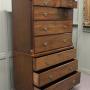 The chest stands on bracket shaped feet, the base section has three long drawers and the upper section is the normal two short over three longer graduated drawers. The top of the piece is set off with an attractive cornice