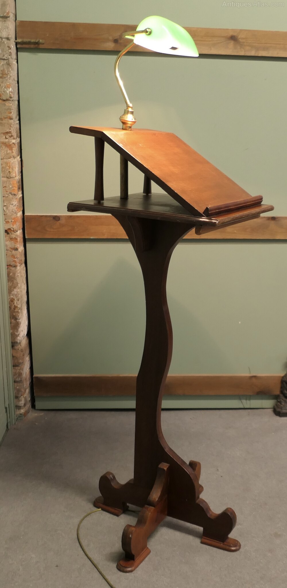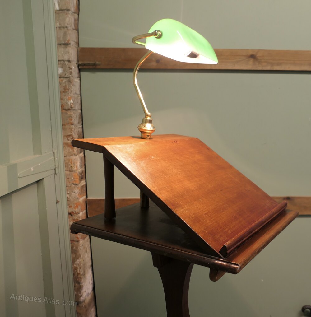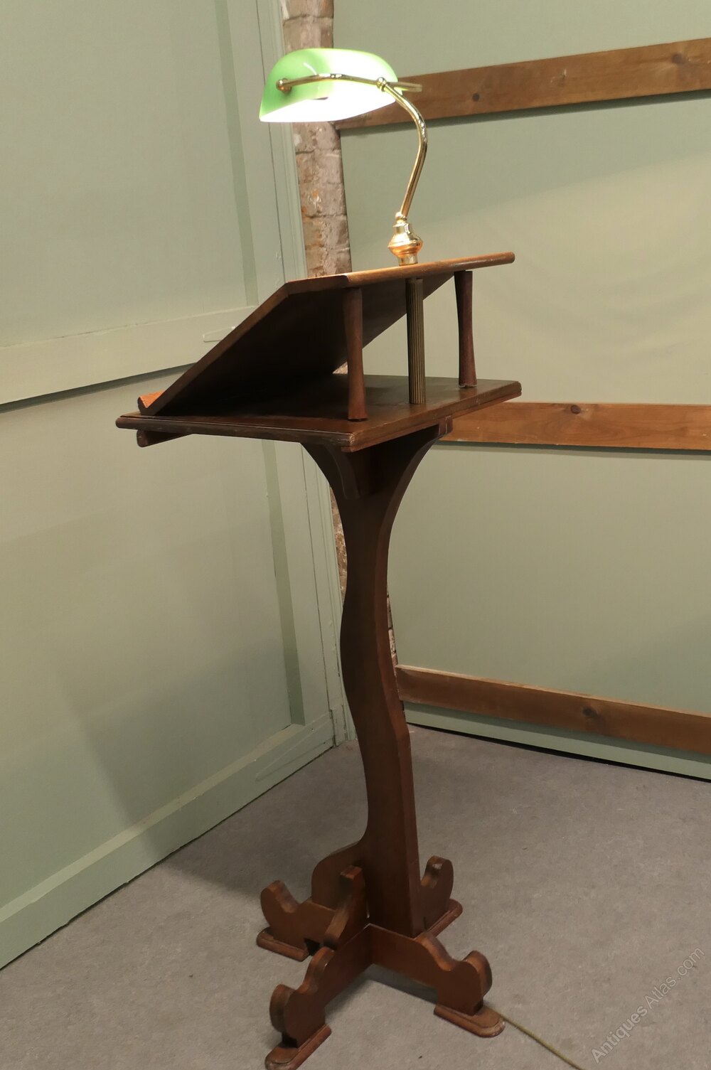 Arts and Crafts Restaurant Reception Station Greeter, with LightTall Arts and Crafts Greeter, the greeting station has a generous slope with a small storage compartment beneath to hold menus etc. the Greeter has a bankers light, with a classic green shade