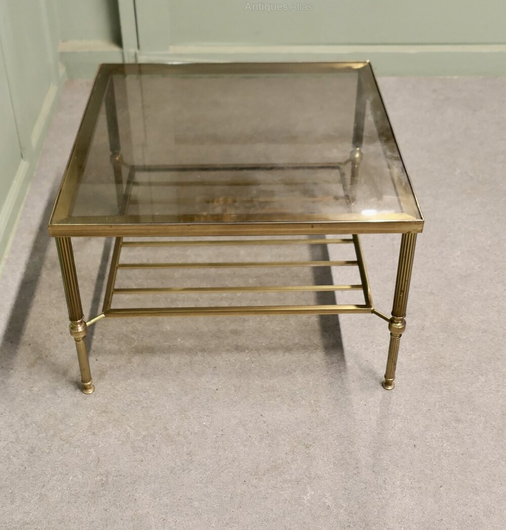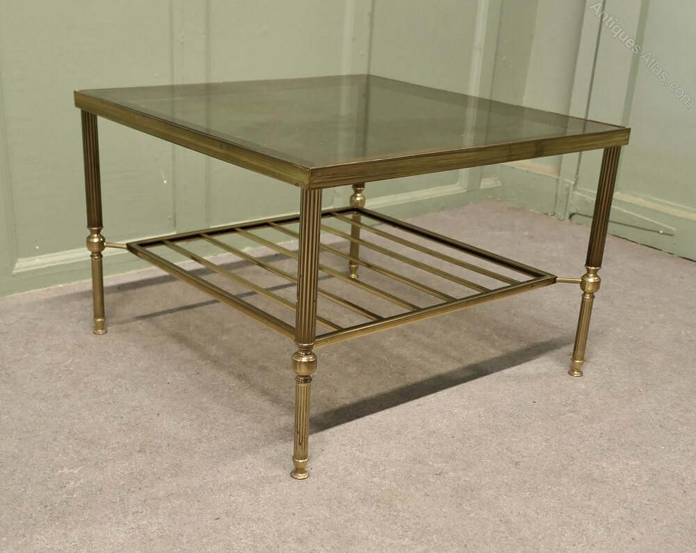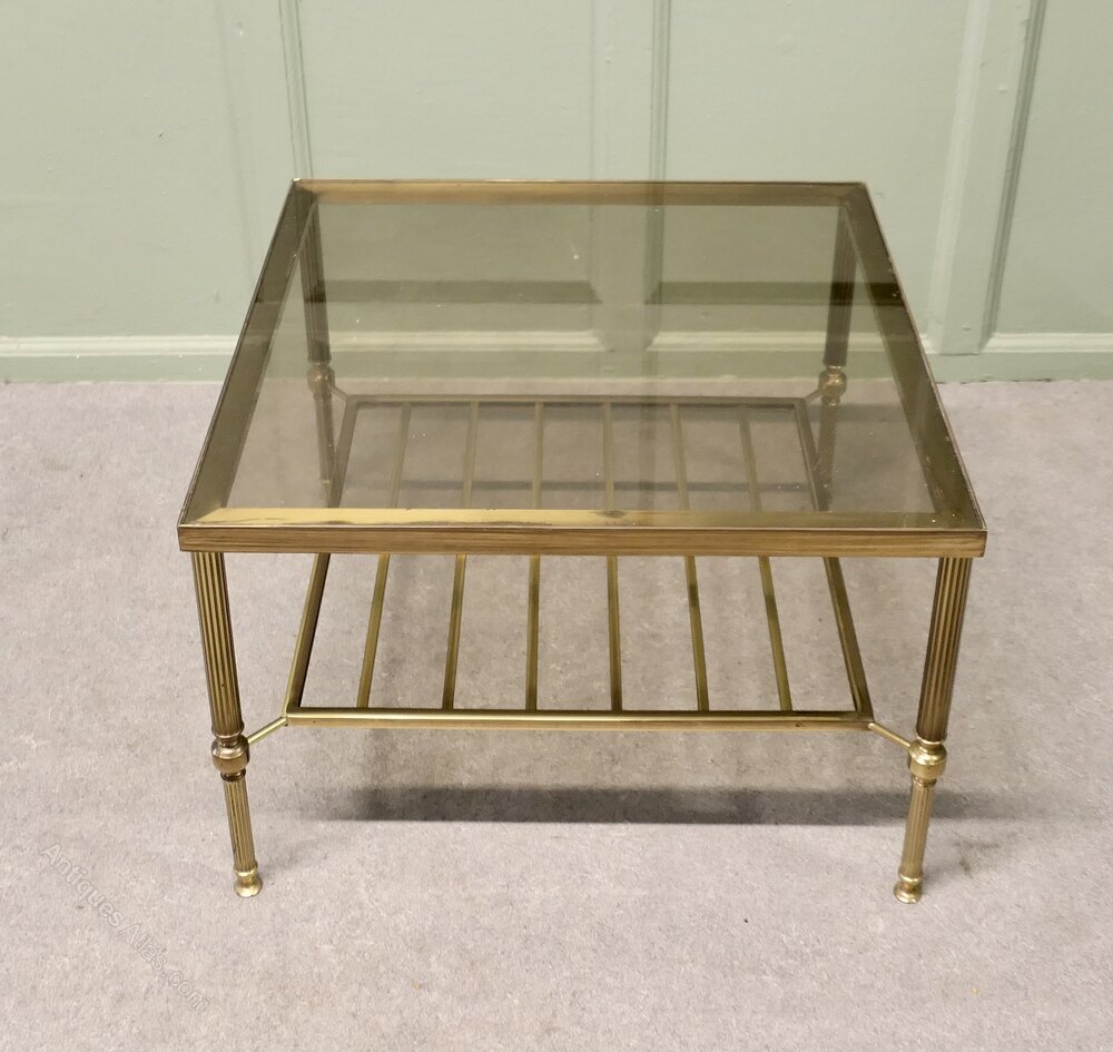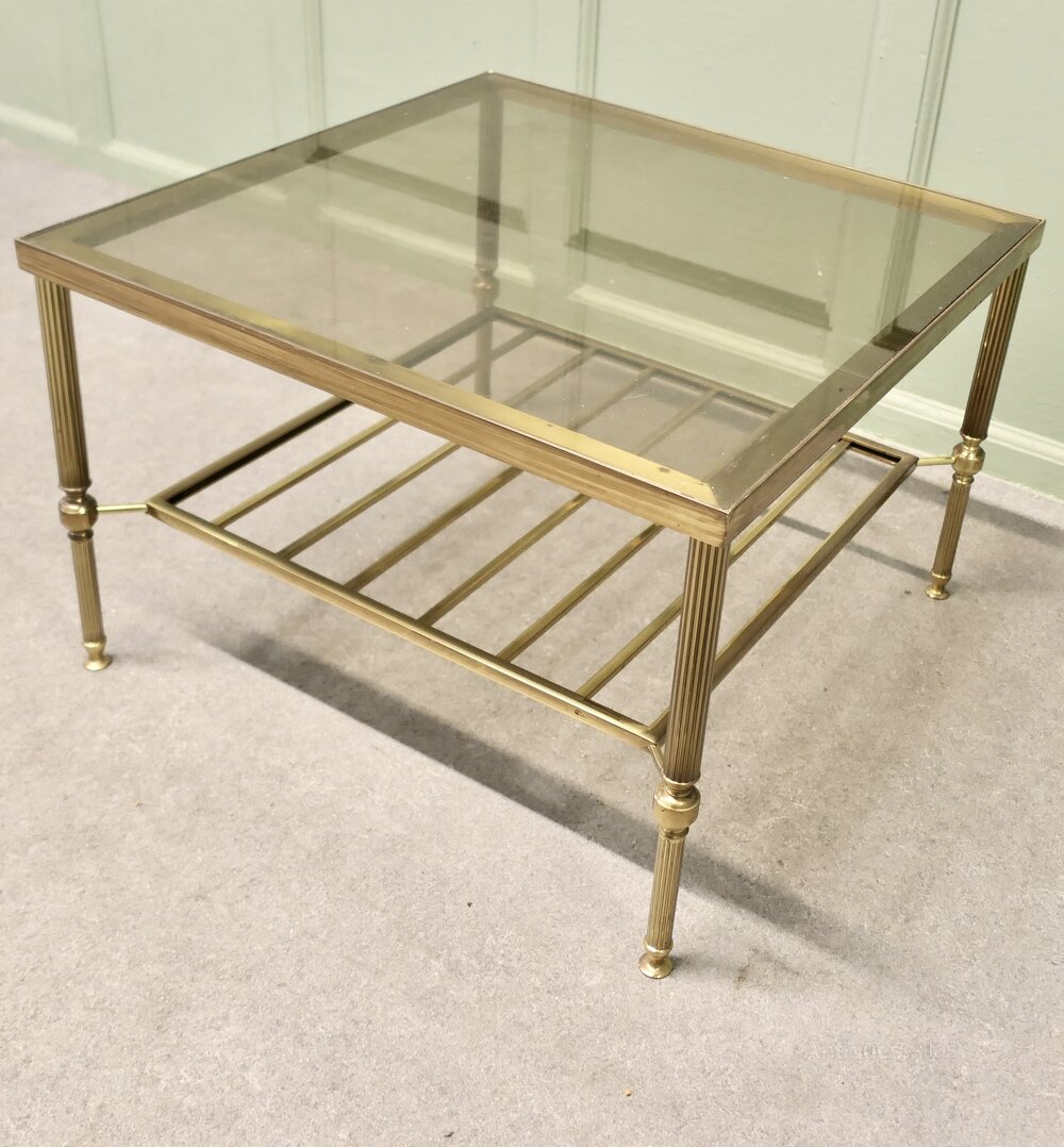 Italian Designer Mid 19th Century Brass Coffee TableThis is a superb quality Italian design, the frame is made in brushed brass with turned legs and a slatted undertier for magazines, the top table is made in very stylish smoked glass